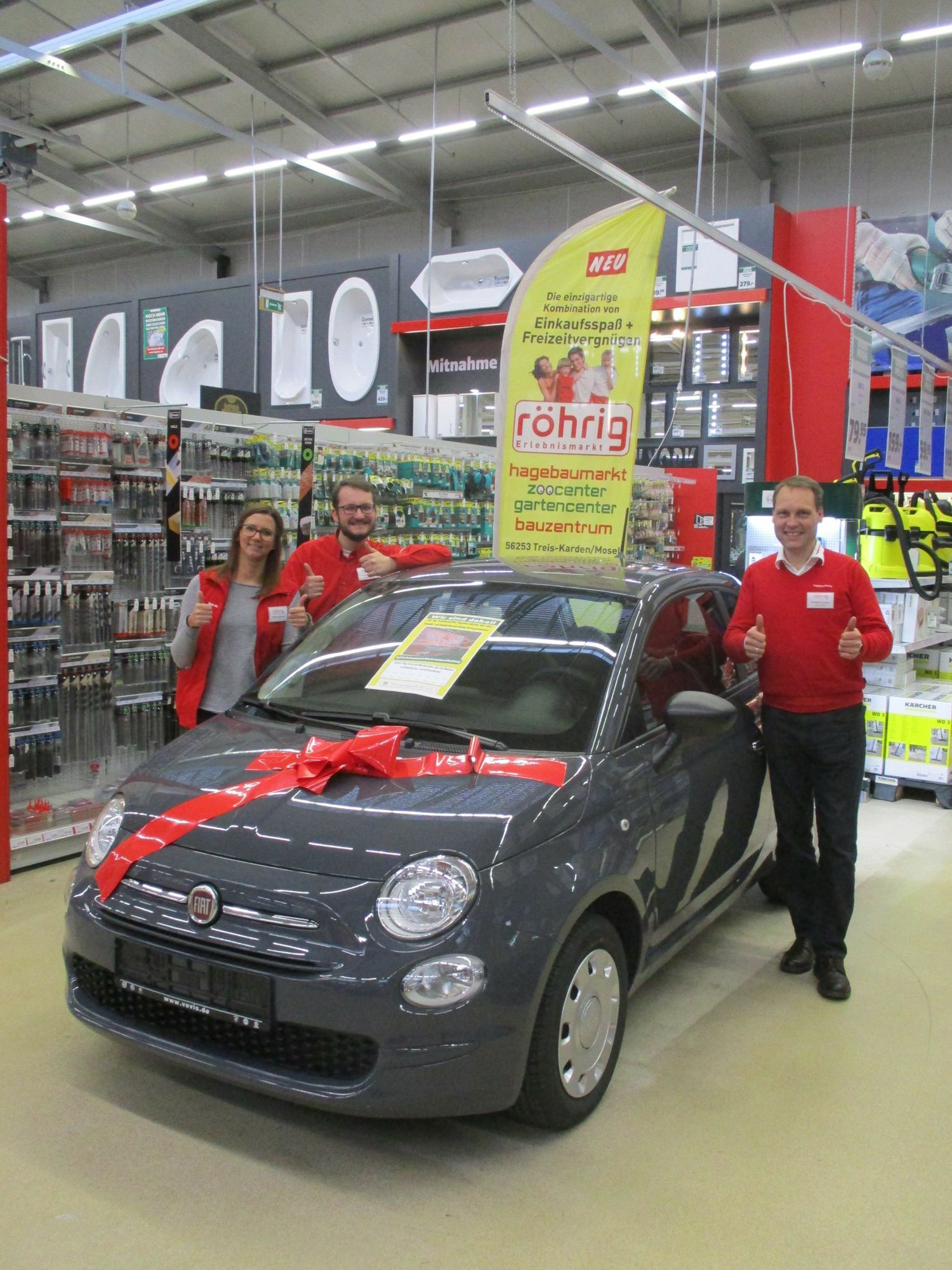 Ein bisher noch nicht bekannt gegebener Kunde des "Röhrig Bauzentrums" in Treis, hat bei einem deutschlandweit organisierten Gewinnspiel der "hagebau" einen "Fiat 500" gewonnen.