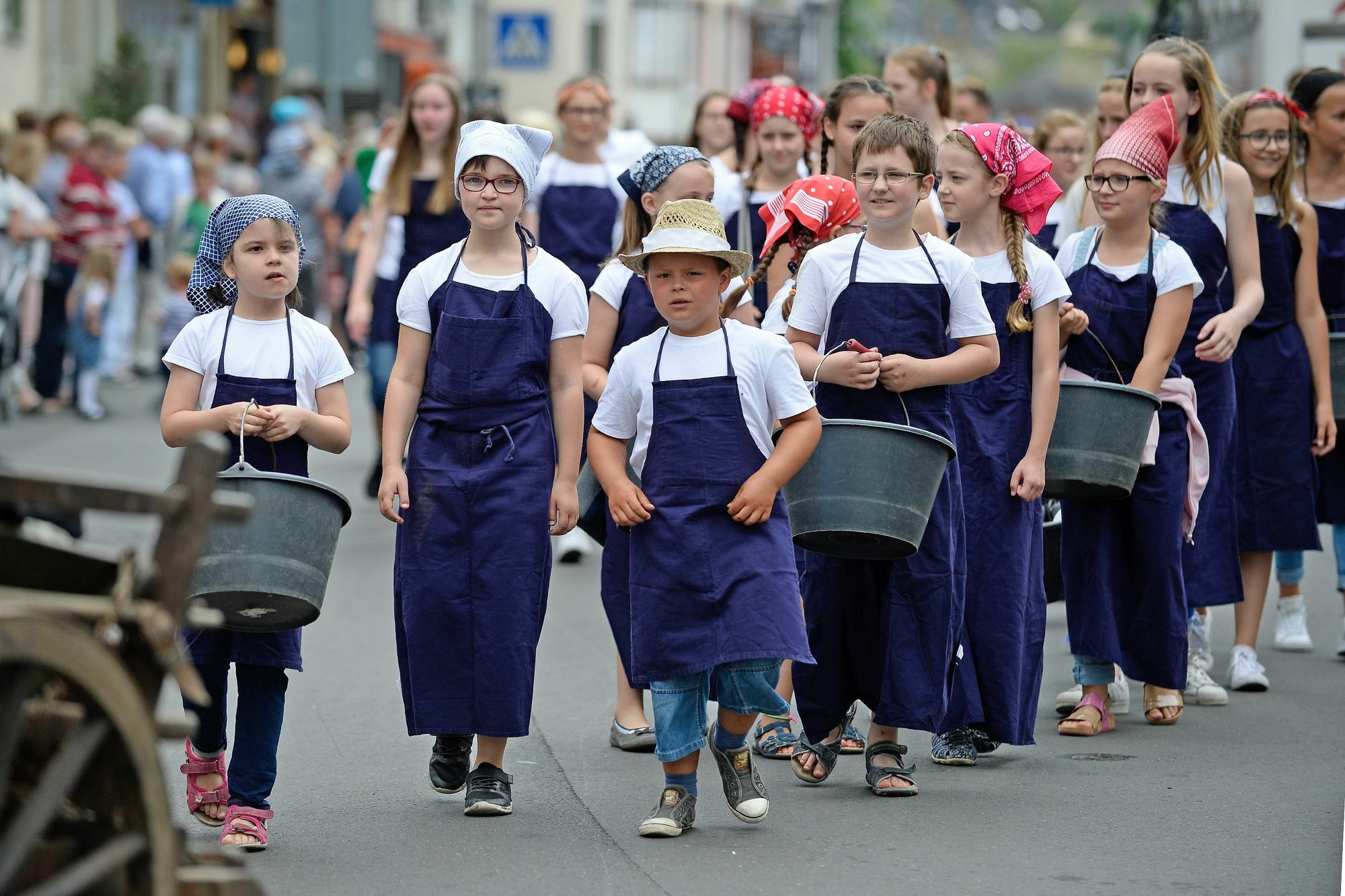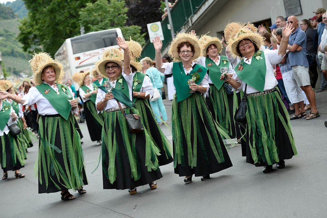 Ein Höhepunkt war der Festumzug durch die Altstadt. Der farbenfrohe Umzug präsentierte moselländische Lebensart und eine historische Rückschau auf den Weinbau. Entlang der Moselpromenade zogen Fußgruppen, Festwagen und Fanfarenzüge zum Festplatz. Mit dabei waren natürlich - auf einem symbolträchtigen "Zeller Schwarze Katz"-Festwagen - die neuen Weinmajestäten der Moselstadt, Weinkönigin Julia und Weinprinzessin Laura. Das Publikum säumte die Promenade und ließ sich von der guten Stimmung der Zugteilnehmer mitreißen. Eine Etappe zum "explosiven Höhepunkt" des Festsonntags: das Musik-Feuerwerk. Der Himmel über dem Festplatz wurde von exakt auf die Musik abgestimmten Lichteffekten illuminiert. Ob die jungen Festzugteilnehmer da noch dabei waren? In jedem Fall scheint der Nachwuchs aber bereit die Tradition weiter zu führen. Dazu gehört auch das Aufstellen des Kirmesbaumes - in diesem Jahr nicht nur einer mit Rekordhöhe, sondern auch zum 50. Mal durch die KKG Zell. Fotos: Philipp Bohn www.weinfest-zell-mosel.de
