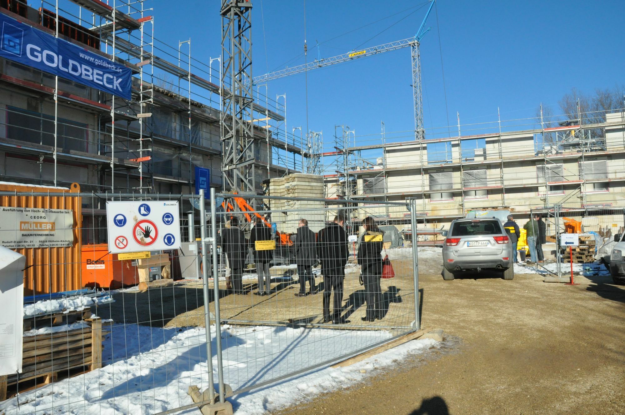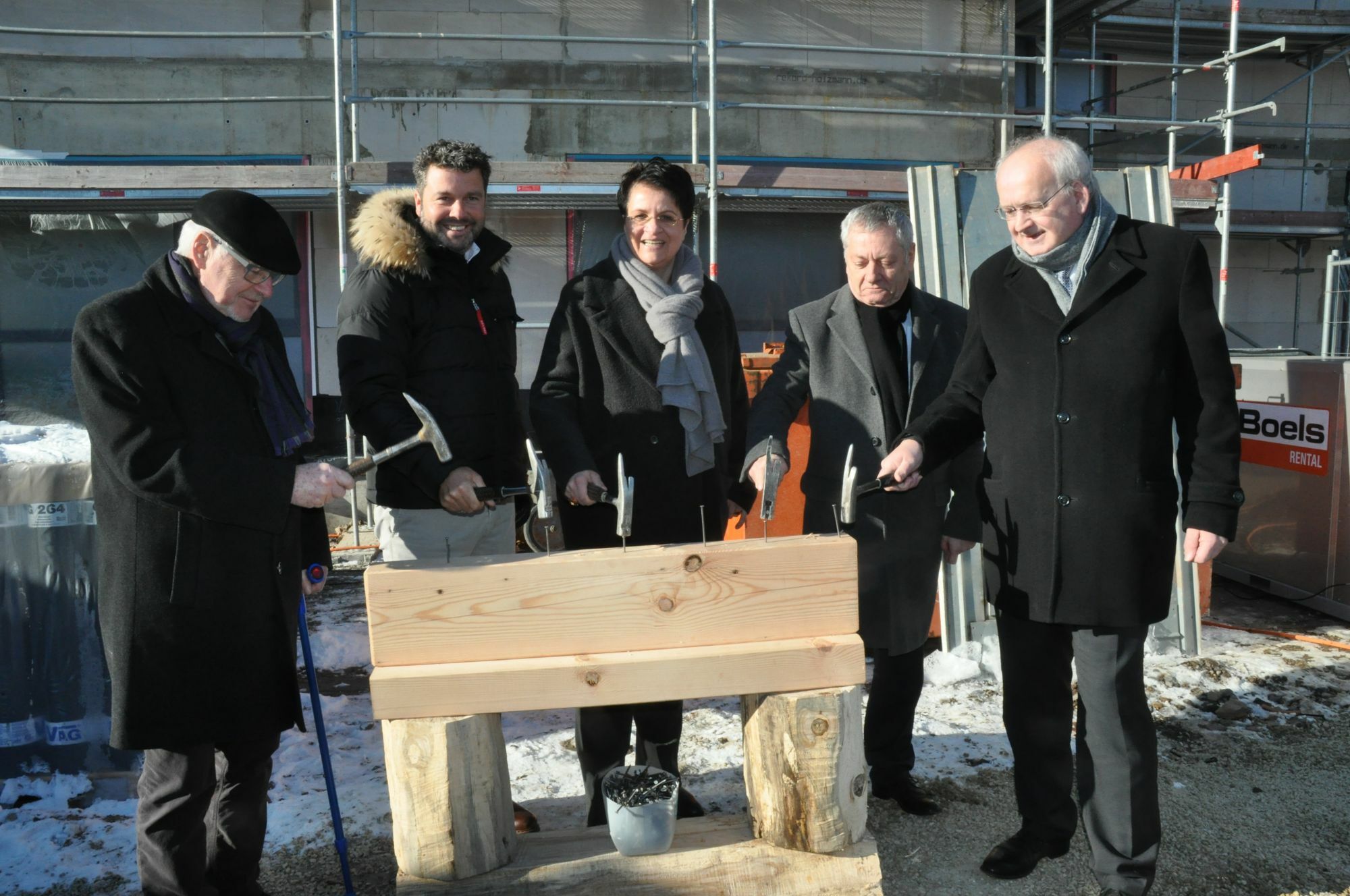 Es war zwar bitterkalt, aber der stahlblaue Winterhimmel zauberte bei den Verantwortlichen trotzdem ein wärmendes Lächeln ins Gesicht. Hatte die Witterung den Baufortschritt zwar etwas verzögert, so werden Fenster, Heizung, Türen, Lüftung und Elektroinstallationen aber bereits eingebaut. Direkt gegenüber dem Klinikum Mittelmosel entstehen 85 Pflegeplätze mit einem Wohnbereich speziell für Menschen mit demenziellen Veränderungen (27 Plätze) sowie 16 Einzel- und Doppelapartments. Sollte eine zunehmende Pflegebedürftigkeit einen Wechsel in eine stationäre Pflegeeinrichtung notwendig machen, müssen die Mieter keinen erneuten Ortswechsel vollziehen. Eine Tagespflege soll im neuen Seniorenzentrum ebenfalls ihren Platz finden. "Wir bieten unseren Kunden nicht das an, was wir haben, sondern das, was sie brauchen", so Elisabeth Disteldorf, Geschäftsführerin des Trägers, der Katharina Kasper ViaSalus GmbH. Für Landrat Manfred Schnur ist es der nächste Schritt in einem Projekt das Zukunft hat. Und der Zeller VG-Bürgermeister Karl Heinz Simon verglich die Lage mit einem Logenplatz, freute sich aber auch über eine Vielzahl von Arbeitsplätzen, die neu entstehen. 50 Jahre nachdem das Krankenhaus auf den Barl umgesiedelt worden ist, sei der Bau des Seniorenzentrums, so Stadtbürgermeister Hans Schwarz, ein Eckpfeiler der Gesundheitsversorgung in der Region. Fotos: Pauly www.katharina-kasper-gruppe.de
