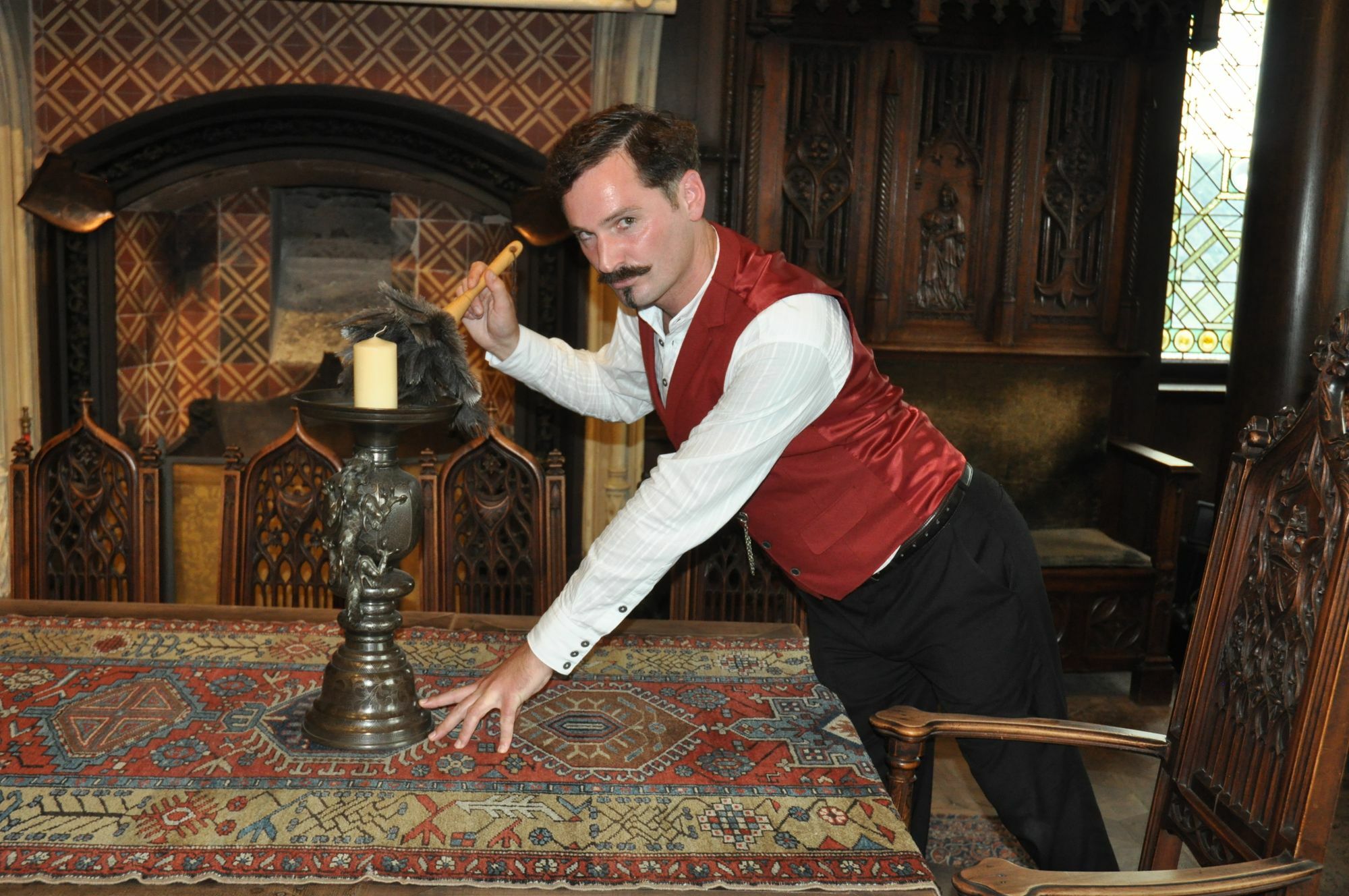 Der Besuch auf der Reichsburg soll auch für all jene interessant sein, die glauben, sie hätten bereits alles rund um das Wahrzeichen der Moselstadt gesehen. "Deshalb gehörten Kostüm- und Schauspielführungen zu unseren Planungen, um das Erlebnis Reichsburg aus einer anderen Perspektive anzubieten", erklärt Stadtbürgermeister Walter Schmitz die Beweggründe ein zusätzliches Angebot zu schaffen. Mittelfristig soll noch eine Mittelalter-Führung hinzukommen. Corona hat das erste Projekt beschleunigt, denn während der unfreiwilligen Schließung im Frühjahr gab Oliver Pinzer, Geschäftsführer der Reichsburg, grünes Licht für die Ausarbeitung eines Drehbuchs, das das Dienstpersonal auf einem verbotenen Streifzug durch die Privaträume der Wiedererbauerfamilie Ravené begleiten soll. Burgführer Alexander Kränzle, und seine Kolleginnen Marie-Luise Otto und Dorothea Kirsch stürzten sich in das Projekt, um zeitgenössische Einblicke in die Wohnkultur und die Lebensart im Kaiserreich des späten 19. Jahrhunderts zu geben. "Das hat schon mehr als zwei Monate in Anspruch genommen", berichtet Kränzle. Herausgekommen ist ein amüsanter Blick in das viktorianische Zeitalter preußischer Prägung. "Sie behandeln uns gut. Wir haben auch immer einen Tag frei – alle zwei Monate", schildert Kränzle als Hausdiener Ernst die Arbeitsbedingungen als Dienstbote. Es sei ein bisschen wie "Downton Abbey" an der Mosel, so der Burgführer und Drehbuchautor, der in seiner Rolle sichtlich aufgeht. Die "Dienstbotentour anno 1877" findet ab sofort jeden zweiten und vierten Freitag (18 Uhr) und Samstag (18.30 Uhr) im Monat statt. Karten gibt es nur nach Voranmeldung online unter www.reichsburg-cochem.de. Fotos: Pauly