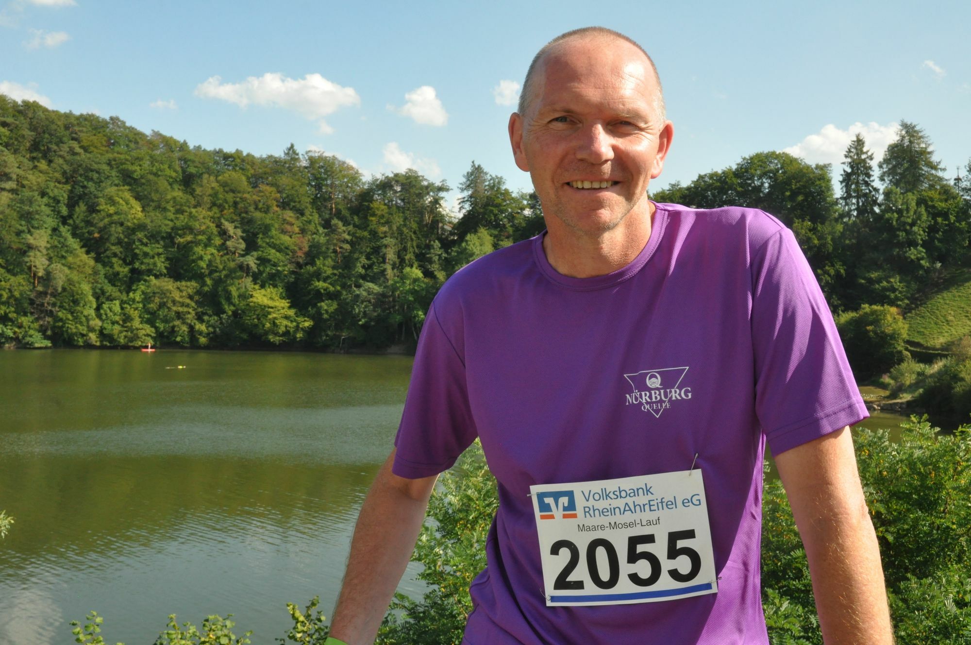 Neben einem Entwicklungshilfeprojekt in Uganda, das er bereits seit Jahrzehnten unterstützt, will er wieder für die "Dauner Tafel", das "Café Asyl Daun" sowie das "Integrationscafé Ulmen" laufen. "Die Motivation hat sich nicht geändert. Es ist einfach notwendig zu helfen und nicht tatenlos zuzusehen. Wir sollten uns darauf besinnen nicht zu stöhnen, sondern anzupacken", formuliert er den Anspruch nicht nur an sich selbst. Den Anspruch hat er auch sportlich. Der 51-Jährige will in Berlin die 42,195 Kilometer unter3:30 Stunden laufen. Dafür wollte er den Halbmarathon des Maare-Mosel-Laufs als Trainingslauf nutzen. "Ich strebe eine Zeit von 1:45 Stunden an", schmunzelte er vor dem Start. Gelaufen ist er 1:44:35 Stunden. Im übertragenen Sinn: Dr. Alois Pitzen weiß, was er tut und wenn er etwas anpackt, will er es auch schaffen. Das gilt auch für seinen "Marathon der Hoffnung", bei dem er Mitstreiter gerne "mitlaufen" lässt. Wer die Spendenaktion unterstützen und Sponsor werden will, kann bei der "Volksbank RheinAhrEifel", IBAN: DE 61577615910660533402 und bei der "Sparkasse Vulkaneifel", IBAN: DE 50586512400300242104 eingerichteten Konten eine Spende einzahlen (Stichwort: "Marathon der Hoffnung"). Foto: Pauly