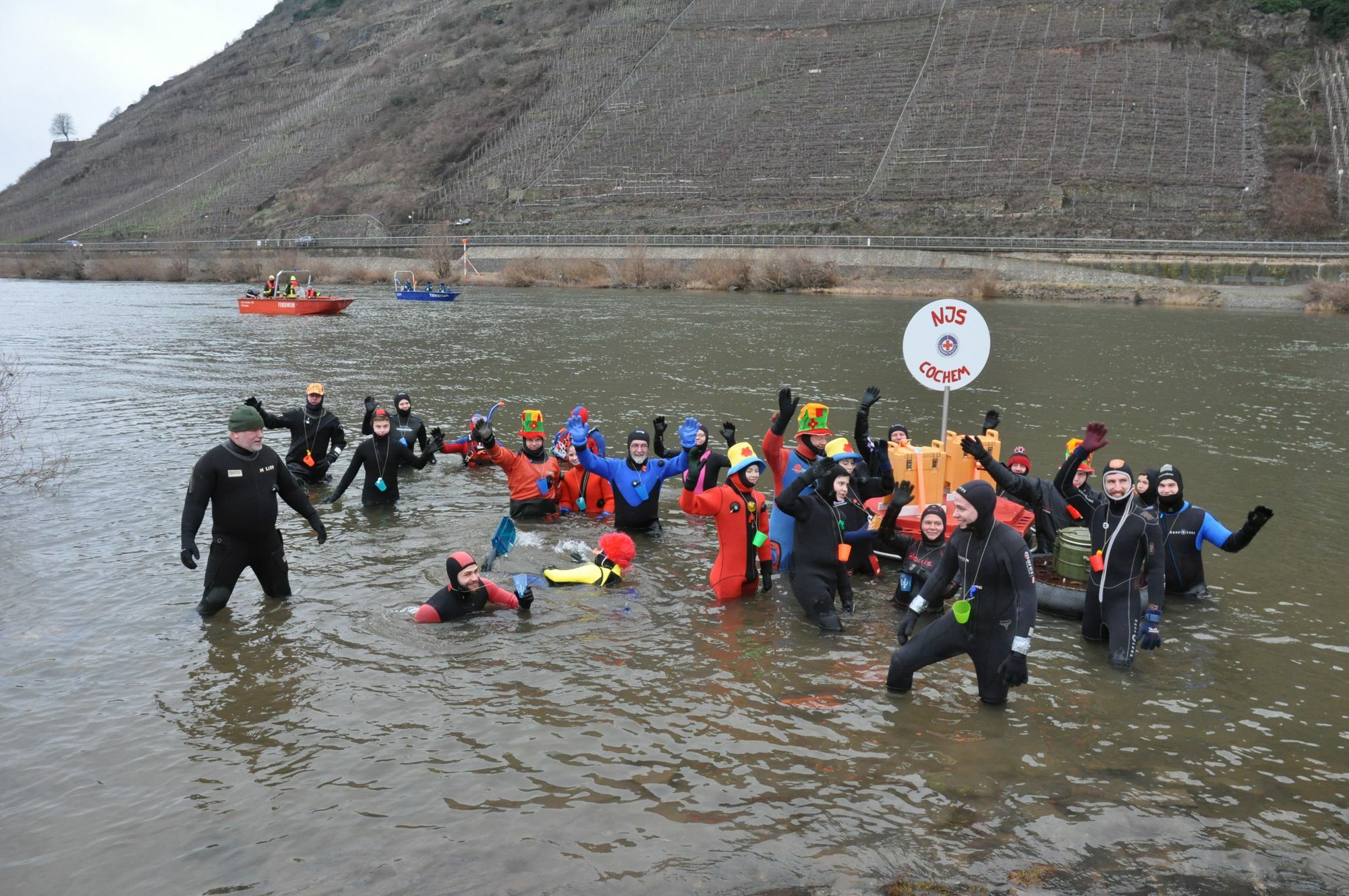 Bereits zum 32. Mal stürzen sich mutige Neujahrsschwimmer am Samstag, 11. Januar, in die Fluten der Mosel. Der Start ist um 13 Uhr wieder am Moselufer in Ernst und das Ziel wird – je nach Strömung – rund eine Stunde später an der Mündung der Endert in Cochem erreicht. Den Startschuss wird Oliver Pinzer, neuer "Burgherr" der Reichsburg, geben. "Bis Anfang der Woche haben sich etwas mehr als 20 Schwimmerinnen und Schwimmer angemeldet", berichtet Thomas Schenk von der ausrichtenden DRK-Wasserwacht Cochem. Darüber hinaus werden wieder zahlreiche Zuschauer erwartet. Unter anderem hat die Cochemer Weinkönigin Lisa II. ihren Besuch angekündigt. Zudem wird der Wasserwacht vor dem Start noch ein neuer Gerätewagen "Wasserrettung" von Landrat Manfred Schnur im Namen des Landkreises übergeben. Und im Ziel gibt es in diesem Jahr mal keinen Eintopf. Die DRK-Verpflegungsgruppe wird Curry-Geschnetzeltes mit Reis anbieten. Archiv-Foto: Pauly www.drk-cochem.de