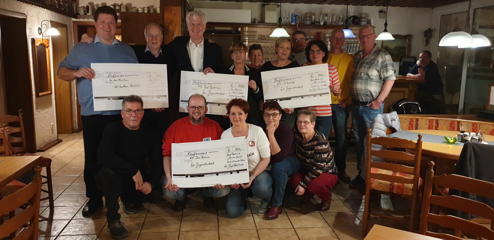 Jeweils 500 Euro gingen für die Jugendarbeit an die Präsidenten der Karnevalsvereine "Don Bosco" und "Schaute", Andreas Johann und Kathrin Thomas, und den Präsidenten des Tennis Clubs Bad Bertrich, Christian Schulte, sowie an den Macher des "Hellen Herbstes", Christoph Kälker.  Foto: privat