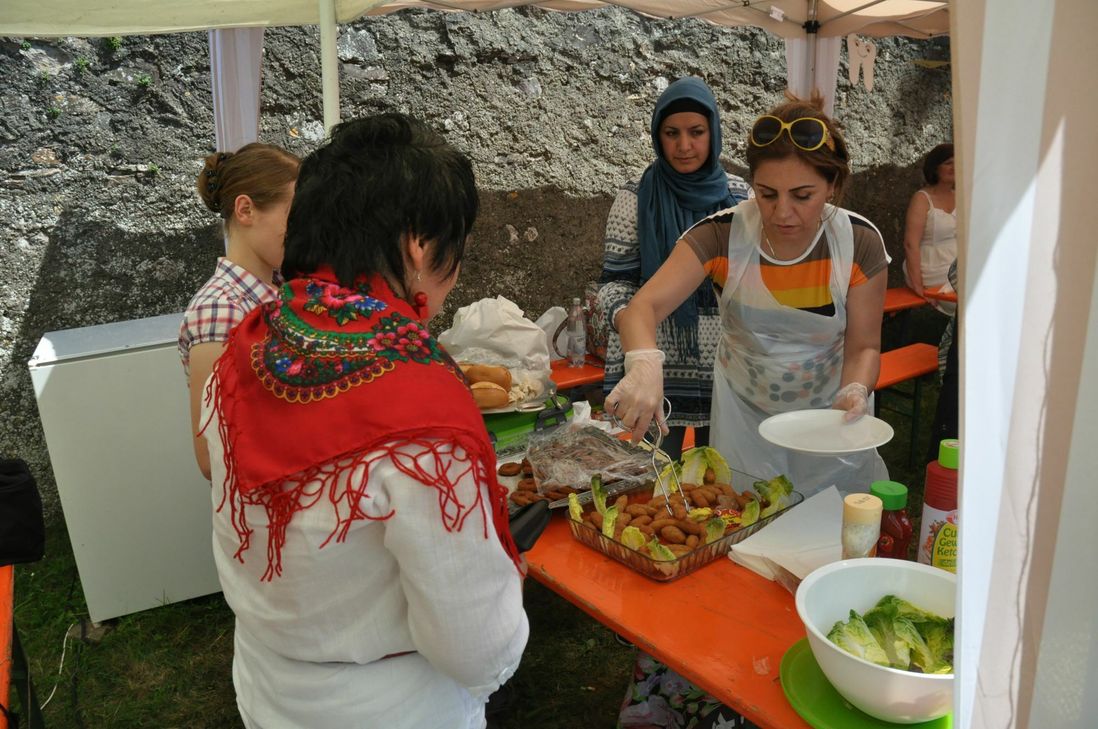 Die Menschen müssten sich annehmen, anerkennen, akzeptieren und kennenlernen, forderte Helmut Schmitt, Mitorganisator des Festes. Eine Forderung, die sich auch im Geleitwort der Religionsgemeinschaften, "Die Verbindung zwischen Himmel und Erde ist der Mensch", wiederfand. Das Fest wurde unter anderem auch von Kindergärten und Schulen thematisch vorbereitet. "Wir wachsen zusammen und sprechen miteinander", brachte es Hedwig Brengmann auf den Punkt. Dass es nicht nur bei der Theorie blieb - Schülerinnen und Schüler haben ein Kochbuch aufgelegt - dafür sorgten die Erwachsenen. Von russischen Spezialitäten über türkische bis hin zu polnischen, thailändischen, syrischen und japanischen konnten probiert werden.