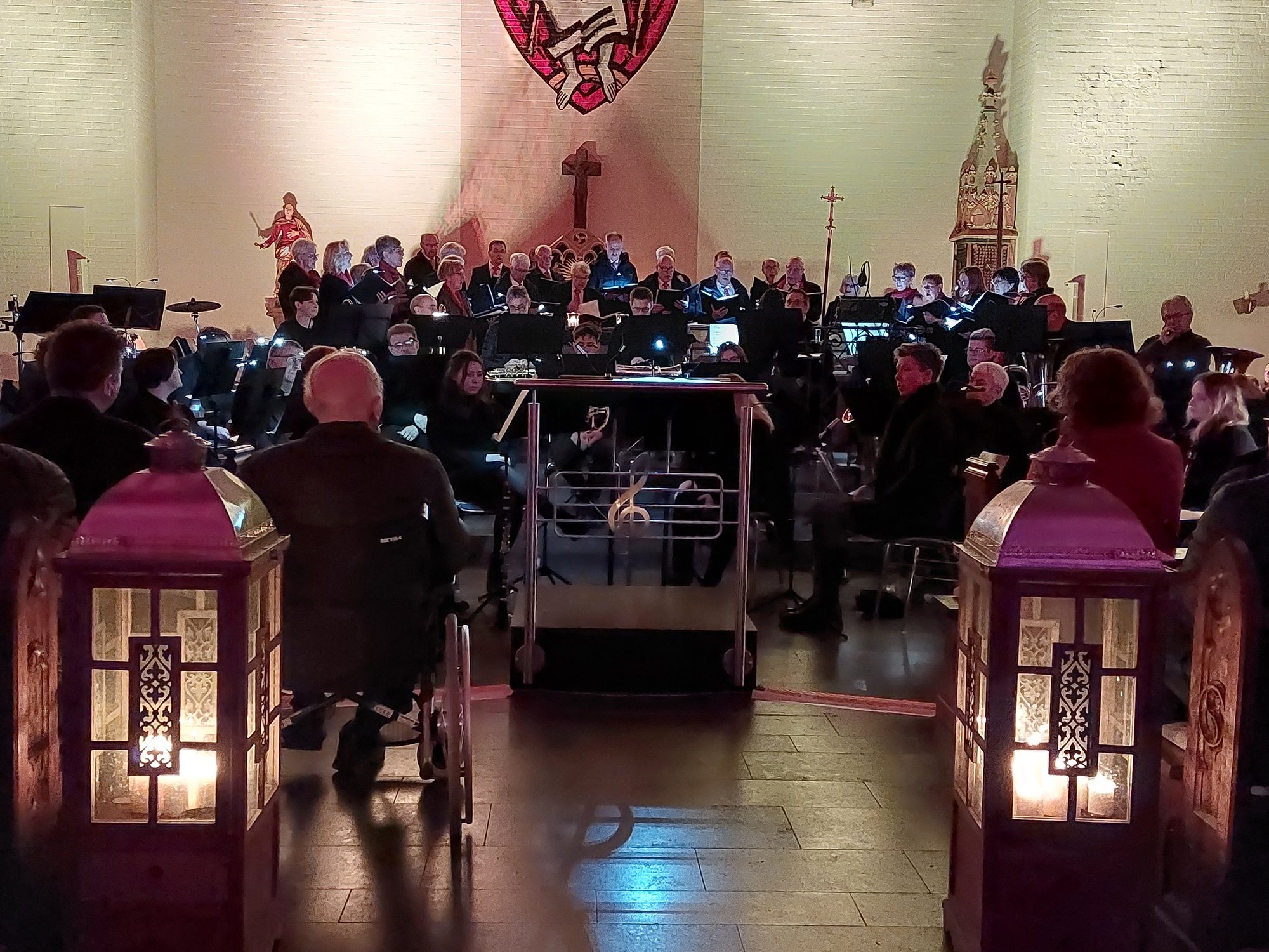 Die Ulmener Kirche war mit einem begeisterten und disziplinierten Publikum fast bis zum letzten Platz gefüllt, das von den musikalischen Darbietungen total begeistert war. Lang anhaltender und stehend dargebotener Beifall war am Ende ein würdiger Lohn für alle, die aktiv in diesem Konzert oder bei der Planung, Organisation sowie Vor- und Nachbereitung mitgewirkt hatten. Denn der Bühnenaufbau, die Beleuchtung und vieles andere mussten ja auch geplant und umgesetzt werden. Und das Publikum zeigte seine Begeisterung auch im kräftigen Mitsingen des gemeinsamen Schlussliedes „O du fröhliche…“. Auch die Zugabe von Orchester und den Chören mit dem Lied „Gloria in excelsis Deo…“ animierte viele im Publikum, auch hier kräftig mitzusingen und den Schlusspunkt eines tollen Weihnachtskonzertes zu bilden.