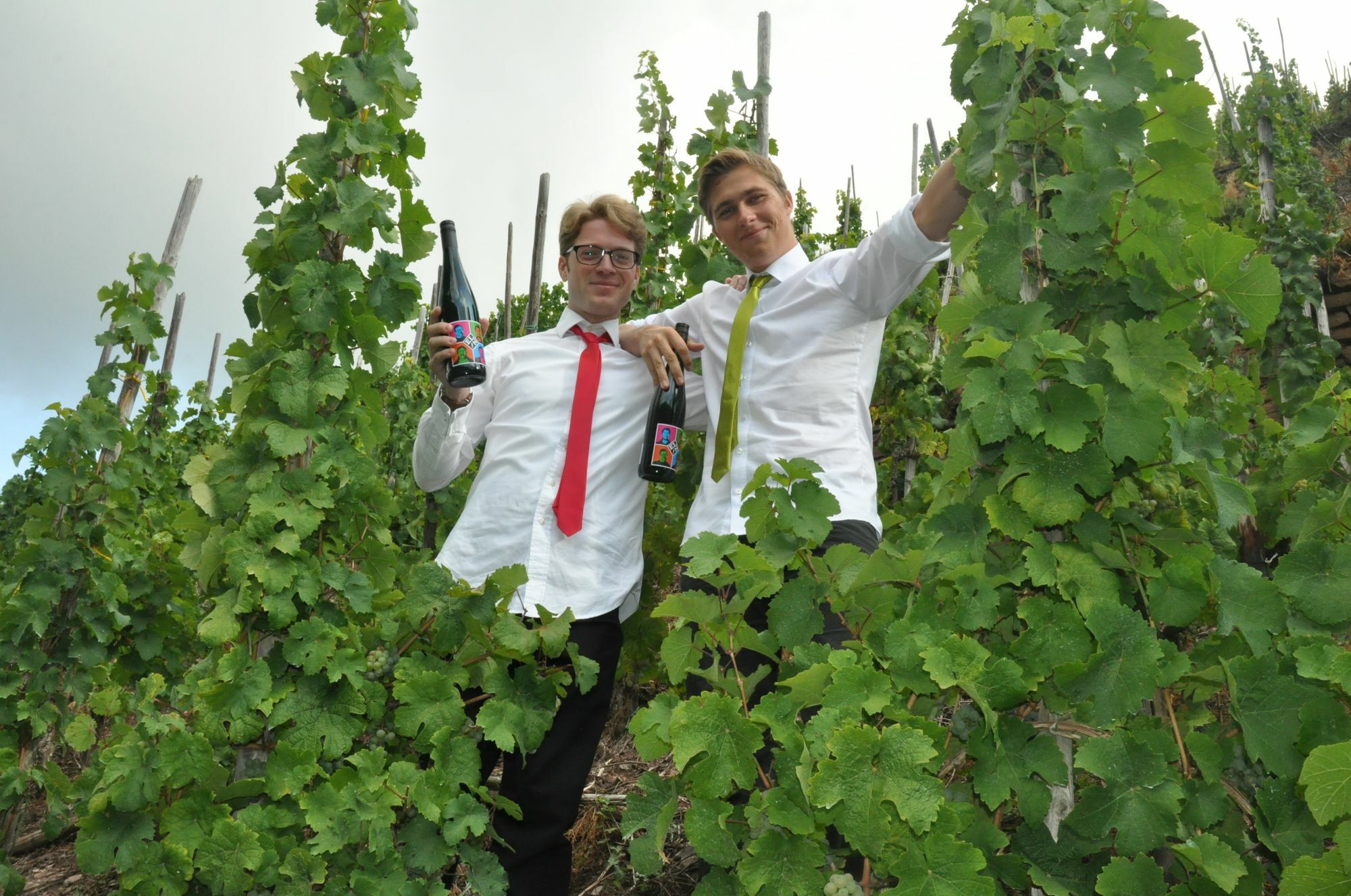 Johannes Borchert aus Ediger und Jens Später aus Neumagen-Drohn studieren Internationale Weinwirtschaft. Zusammen mit dem Schweizer Ueli Holzer und dem Freiburger Henrik Hopp haben die beiden Moselaner den ersten Platz der "Geisenheimer Weinwerkstatt", einem Wettbewerb der Hochschule Geisenheim und der "Sparda Bank Hessen" gewonnen. Ziel war es eine eigenständige Weinmarke zu entwickeln. "Den Wein hatten wir schon", lacht Johannes Borchert, dessen Eltern ein Weingut in Ediger-Eller betreiben. Sein Vater hatte mit der "Weinzeit" einen halbtrockenen Riesling aus der Steillage Elzhofberg bereits am Markt etabliert. Das Etikett des Weines fällt sofort ins Auge - ein Strichmännchen. Für die Studenten zwar gut, aber in punkto Wahrnehmung wollten sie noch einen besseren Effekt erzielen. "Der Wein hat genau in unser Anforderungsprofil gepasst. Wir wollten für den englischen Markt einen cremigen und nicht ganz so säurelastigen Wein. Jetzt brauchten wir nur noch eine Idee zur Präsentation", erzählt Jens Später. Mit Hilfe eines Designers entstand ein Etikett, das sich der Pop-Art bediente und die Köpfe der Studenten sozusagen in einer "Bunten Revolution" integrierte. Mit einer peppigen Beschreibung des Weines auf der Rückseite der Flasche - "70 % Steil; 80 % Schiefer, 90 % Handarbeit, 100 % ELZ" - gab es in der Projektarbeit schon einmal die Note 1,0. Die Krönung folgte dann bei der Projektpräsentation im Frankfurter Römer. Borchert, Später und Co. beeindruckten die Jury auf der ganzen Linie. Mit einem im Katalog eingelegten Lesezeichen führten sie die Juroren direkt zu ihrem Wein, erzählen die beiden mit einem Augenzwinkern. Zudem dürfte auch ihr Twitter-Account #NURSTEILISTGEIL gut angekommen sein. Am Ende hatten die "What ELZ!?"-Jungs die Nase vorn und 14 weitere Gruppen hinter sich gelassen. "Dafür gab es Ruhm und Ehre und nicht zuletzt eine Flasche Sekt", schmunzeln Borchert und Später über das "Preisgeld". Mit dem Gewinn des Wettbewerbs ist aber bei ihnen das Unternehmergen aktiviert worden. Die Moselaner bieten ihre Kreation "What Elz!?" über den Weinhandel in der Gastronomie an und beliefern unter anderem schicke Weinbars. "Wir wollen mit der peppigen Aufmachung Berührungsängste vor Wein abbauen", so die Jungunternehmer, die eine Idee sozusagen "trocken ausgebaut" haben und jetzt schon der Traubenlese entgegenfiebern, denn "What ELZ!?" soll auch als 2015er eine trendige Marke sein. Foto: Pauly