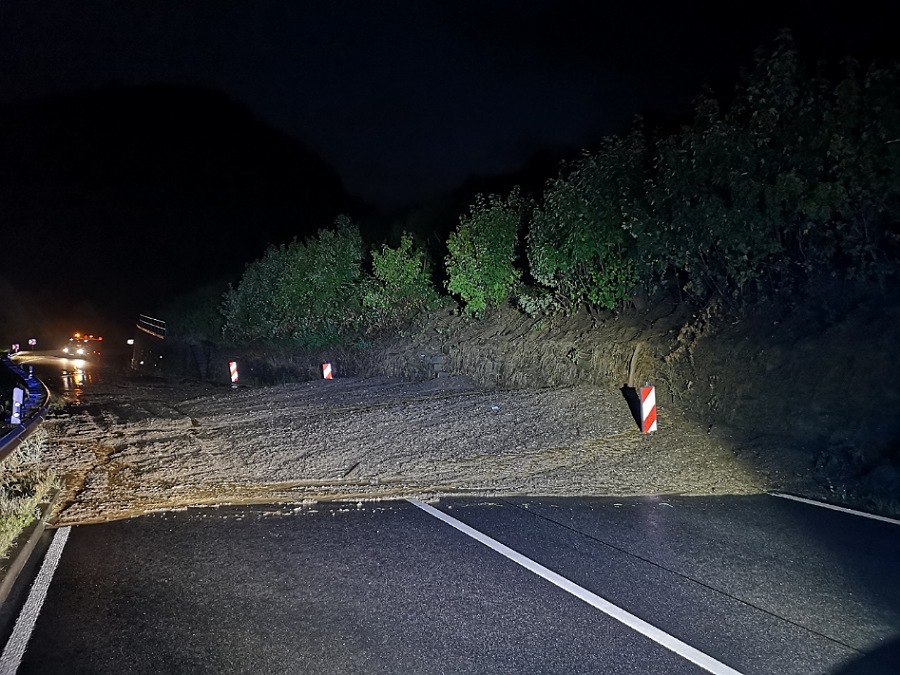 Die B 421 im Zeller Berg war aufgrund eines Erdrutsches blockiert.