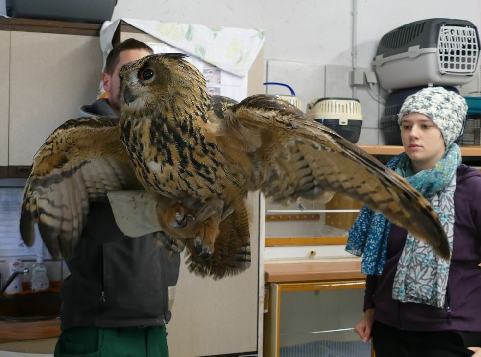 Erste Hilfe für verletzten Uhu