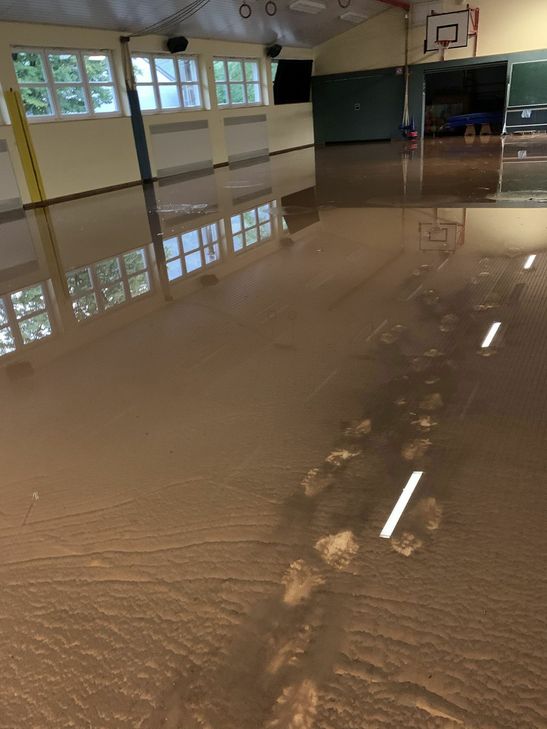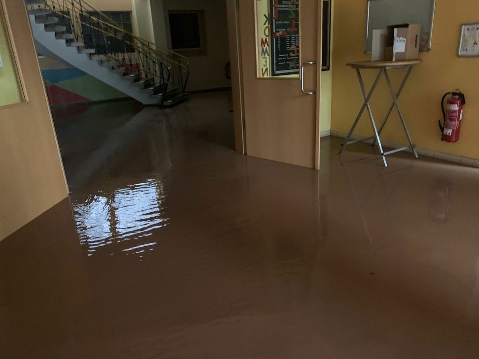 Im Untergeschoss des Gebäudes in der Plänterstraße 42 wurde die komplette Küche, ein Speisesaal sowie Technikräume überflutet. Im Erdgeschoss des in einem Hang liegenden Gebäudes wurden Teile der Turnhalle sowie der Verwaltungsräume überflutet. Über die Höhe des Schadens in den Räumlichkeiten der Schule kann noch nichts gesagt werden. Andreas Schorn, Büroleiter der Verbandsgemeindeverwaltung Zell: "Die Räumlichkeiten müssen erst von einem Gutachter der Versicherung überprüft werden." Erst dann solle, so Schorn im Gespräch mit dem WochenSpiegel, entschieden werden, ob gegebenfalls Ausweichräume in anderen Gebäuden genutzt werden müssen oder nicht.Der Unterricht am Montag und Dienstag wurde für die rund 150 Schülerinnen und Schüler abgesagt. Freiwillige Feuerwehr und Technisches Hilfswerk waren im Einsatz. Aktuelle Infos zum Schulbetrieb können Eltern unter der Webadresse www.zell-mosel.de erhalten.