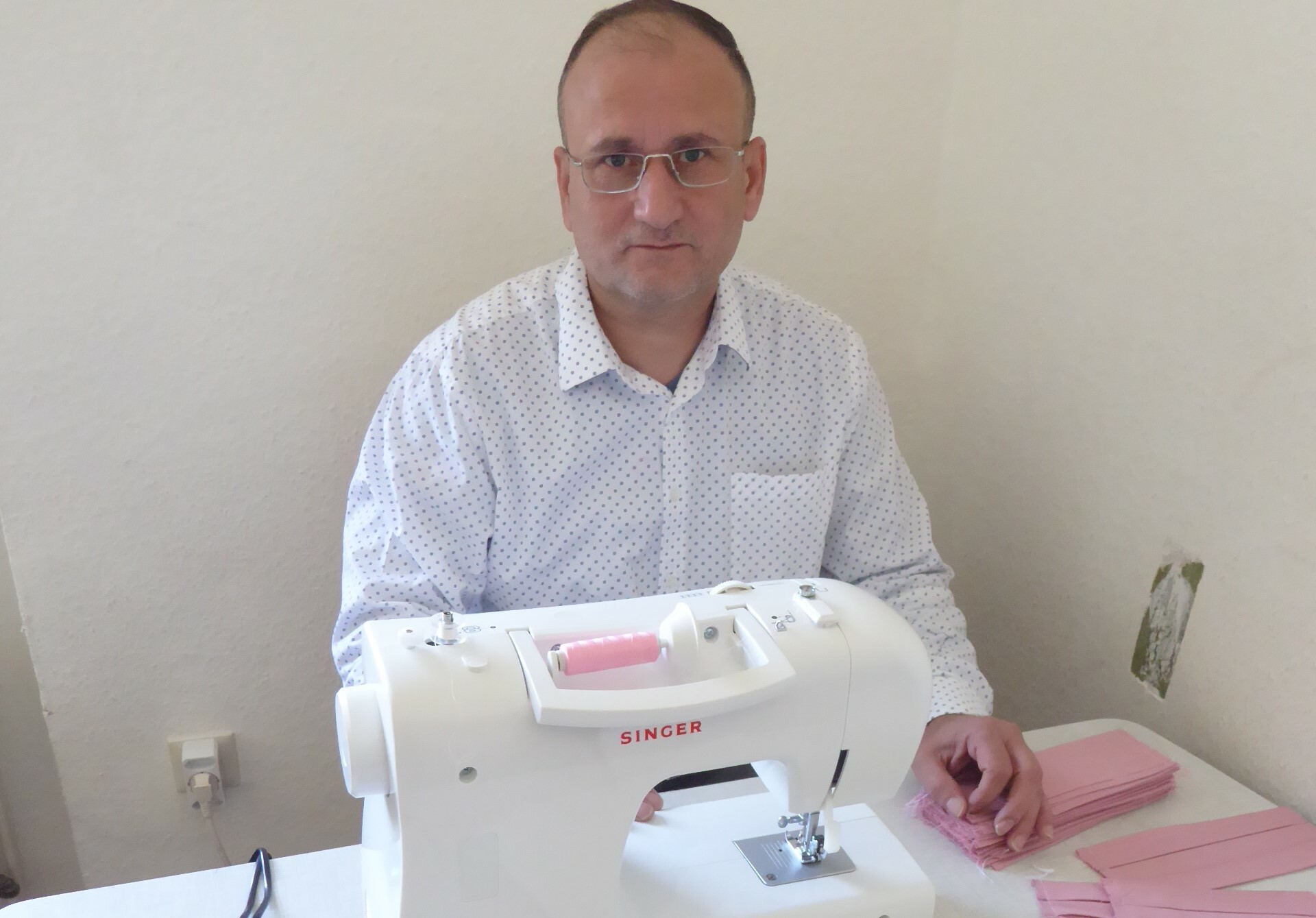 Hasan Ouso ausgebildeter Schneider und Modedesigner; "Wir wollen damit ein kleines Dankeschön sagen für die große Hilfe, die uns zuteil wurde und etwas von dem zurückgeben, was wir an Unterstützung erfahren durften, seitdem wir hier in Ulmen leben dürfen." So wurde dem syrischen Schneider von Helga Schmitt-Eckardt aus Ulmen, die sich zusammen mit ihrem Mann Karl seit einigen Jahren sehr engagiert um die Aufnahme und Integration von Flüchtlingen bemüht, eine neue Nähmaschine samt Zubehör geschenkt. Nachbarn und Mitglieder des in Ulmen vor kurzem gegründeten kirchlichen Ehrenamtskreises "Flüchtlinge und Integration" unterstützen diese Aktion mit Spenden von Stoff und anderen Utensilien. Mehr als 300 Schutzmasken hat Hasan Ouso bislang schon genäht und sie liegen ab sofort im Edeka-Markt Biermann in Ulmen und in den unterschiedlichen Verkaufsstellen der Bäckerei Müsch aus Alflen mit entsprechenden Hinweisen bereit und können gegen eine kleine Spende mitgenommen werden. "Mit dem Erlös können wir neue Gummibänder und anderes Zubehör beschaffen, damit Hasan Ouso noch viele neue Schutzmacken nähen kann. Aber darüber hinaus wollen wir mit den Spenden auch gezielt die Aktion ,Ärzte ohne Grenzen' bei ihrer Anti-Corona-Infektionsarbeit in Afrika unterstützen, wo das Gesundheitssystem nicht so gut ausgebaut ist, wie bei uns in Deutschland", so Karl Eckardt. Foto: Wilfried Puth