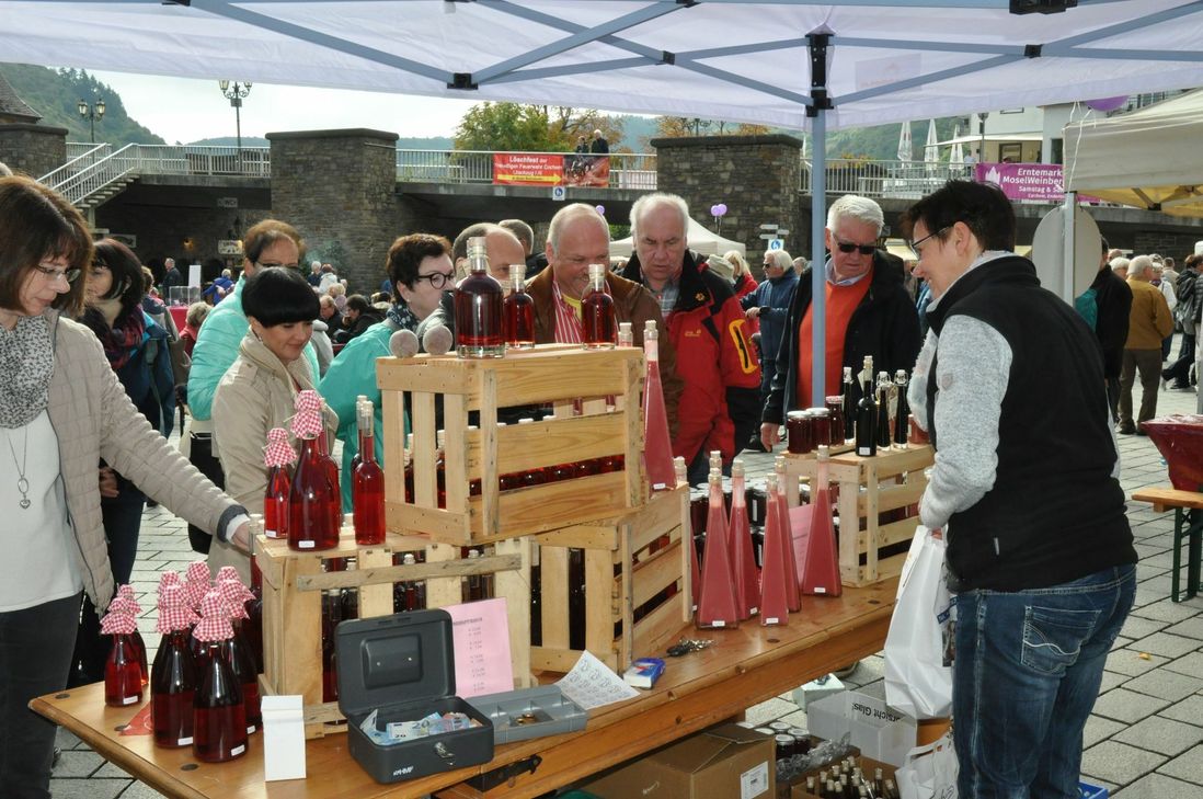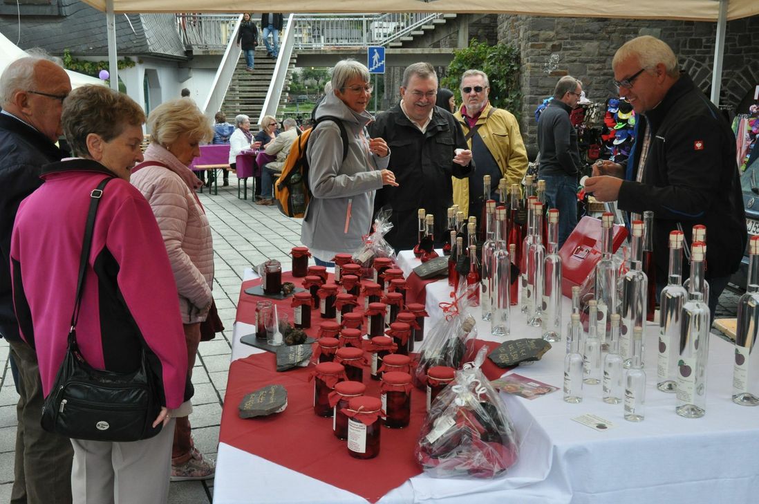 Flüssiges, Eingewecktes oder zu Konfitüre Eingekochtes hatte trotz der Wetterunbill auf dem Erntemarkt Konjunktur, denn die Ernten der vergangenen Jahre konnten die Frostgeschädigte zumindest etwas kompensieren. "Bei mir im Garten hat der Baum gerade mal drei Früchte getragen", erzählte Landrat Manfred Schnur, der zusammen mit vielen Genussexperten der roten, pelzigen Frucht huldigte. Für ein erstes Geschmackserlebnis sorgte Herbert Budweg vom Hotel-Café Germania, der einen Kir mit Likör vom "MoselWeinbergPfirsich" kredenzte. Die köstlichen Erzeugnisse dieser, kleinen roten Frucht fanden in jedem Fall viele neue Liebhaber, denn nach einer Verkostung wanderte so manches Produkt in die Taschen der Gäste aus nah und fern. Und dann wären da noch Ideen zum Kochen und Backen mit der Frucht: Eine Sammlung von Rezepten, die gegen eine Schutzgebühr in der Tourist-Information zu erwerben ist, macht Appetit. Fotos: Pauly www.ferienland-cochem.de