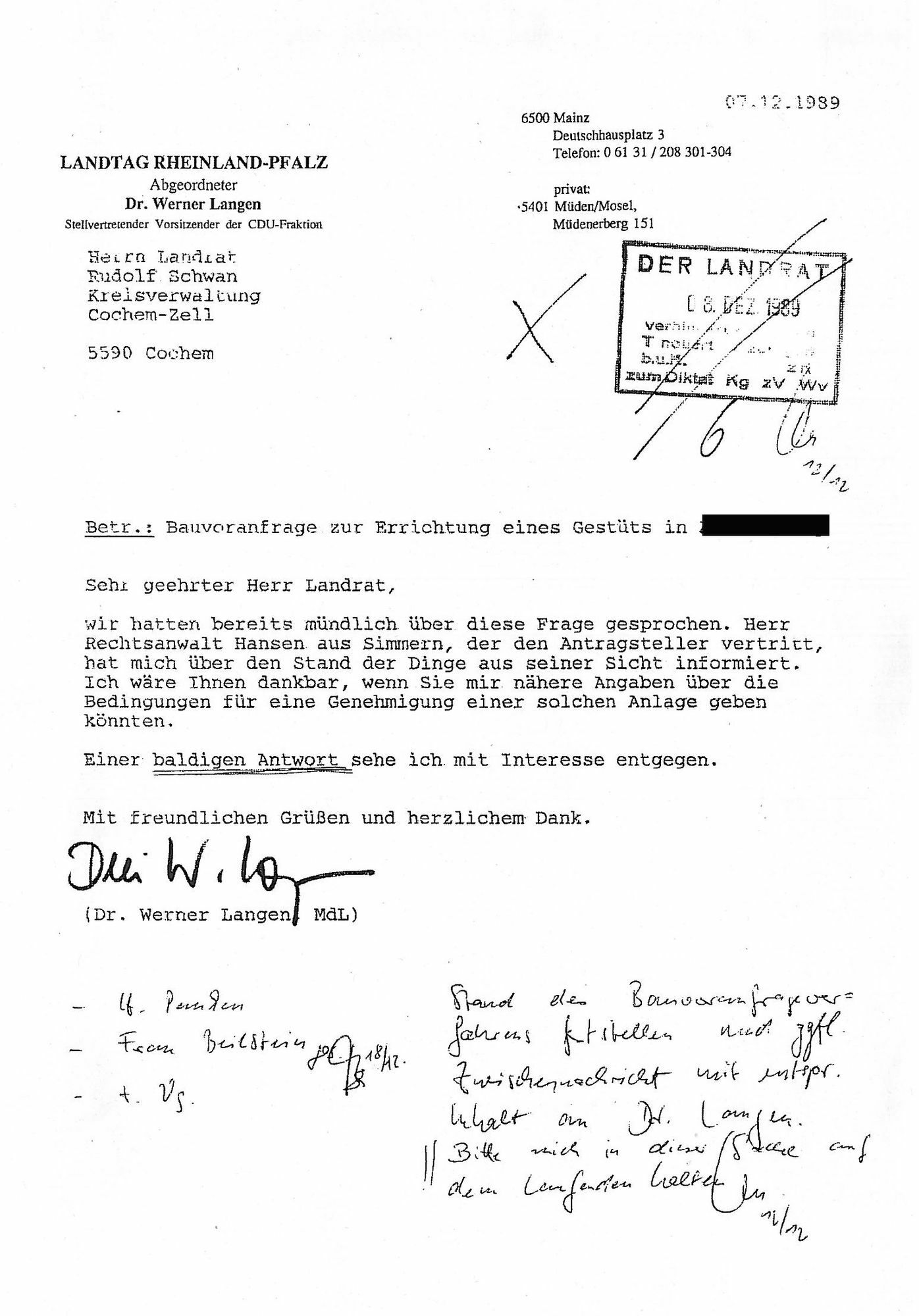 Die Recherchen zu den sogenannten "Panama Papers" haben tausende Steuersünder in der ganzen Welt in die Bredouille gebracht. Mindestens einer davon kommt aus unserer Region: Werner Mauss. Der Ex-Geheimagent aus dem Hunsrück, jahrelang treuer Großspender der CDU, wurde bereits wegen Steuerhinterziehung in Millionenhöhe vom Landgericht Bochum verurteilt (wir berichteten). Soweit bekannt. Neu ist aber, dass offenbar Mauss nicht nur eine besondere Nähe zu den CDU-Größen Peter Bleser und Manfred Schnur haben soll, sondern vermutlich auch zu Dr. Werner Langen. Langen war von 1981 bis 1992 Vorsitzender der Cochem-Zeller CDU und von 1992-1993 sogar CDU-Landesvorsitzender. Der EU-Abgeordnete aus Oberfell hat in der Vergangenheit mehrfach betont, Mauss nicht zu kennen und in seiner Zeit habe die CDU auch keine Spenden von Mauss direkt oder indirekt erhalten. Angesprochen auf den Ex-Agenten Werner Mauss, betont Langen gegenüber dem WochenSpiegel: "Ich habe ihn einmal bei einer Geburtstagsfeier getroffen. Mehr nicht." Auch habe er sich niemals für ihn in irgendeiner Form eingesetzt. Unterlagen, die dem WochenSpiegel vorliegen, könnten ein anderes Licht auf den Fall werfen. So hat sich Langen mit Schreiben vom 7. Dezember 1989 an die Kreisverwaltung Cochem-Zell (an Landrat Schwan persönlich) gewandt, um sich dort im Rahmen einer "Bauvoranfrage zur Errichtung eines Gestüts" zu erkundigen. Zuvor habe er (Langen d. Red.) bereits mit dem Landrat persönlich und dem Rechtsanwalt des Antragsstellers (Mauss d. Red.) gesprochen, wie aus dem Schreiben hervorgeht. Das Gestüt hat die Firma "Lolilane" errichtet. Hinter "Lolilane" steht der Hunsrücker Ex-Agent Mauss. Dr. Werner Langen schließt das Schreiben an den Cochem-Zeller Landrat mit den Worten: "Einer baldigen Antwort sehe ich mit Interesse entgegen." Wie es der Zufall will, ist genau der Anwalt mit Name "Hansen" auch der Anwalt über den die CDU-Spenden viele Jahre später (nach der Zeit, in der Dr. Langen CDU-Vorsitzender war) an die Cochem-Zeller und die rheinland-pfälzische CDU geflossen sind. Für den EU-Abgeordneten Dr. Langen könnte eine eventuelle "Nähe" zu Mauss und/oder Hansen zu Problemen in seiner Tätigkeit als Vorsitzender des "Panama Papers Untersuchungsausschusses" werden. Gerade deshalb, weil Mauss "Gegenstand" in den "Panama-Papers" ist, könnte hier schnell eine "Besorgnis der Befangenheit" unterstellt werden, wie Insider vermuten. Mit dem Untersuchungsausschuss will das Europäische Parlament dem in den "PanamaPapers" offengelegten Transfer von Geld in Briefkastenfirmen und möglichen Steuervergehen nachspüren. Nachdem Dr. Werner Langen von unseren Recherchen erfuhr, meldet er sich telefonisch bei uns: "Ich habe mich mit dem betreffenden Schriftwechsel an die Kreisverwaltung gewandt, um Informationen zu bekommen, weil ich danach gefragt worden bin. Das habe ich als Abgeordneter für viele Bürger getan. Nicht mehr und nicht weniger." Hintergrund: Die "Panama-Papers" Als "Panama Papers" werden vertrauliche Unterlagen des panamaischen Offshore-Dienstleisters Mossack Fonseca bezeichnet, die infolge eines 2,6 Terabyte großen Datenlecks am 3. April 2016 an die Öffentlichkeit gelangten. Nach Einschätzung der beteiligten Medien belegen die Unterlagen legale Strategien der Steuervermeidung, aber auch Steuer- und Geldwäschedelikte, den Bruch von UN-Sanktionen sowie andere Straftaten durch Kunden von Mossack Fonseca. Die Enthüllungen haben in zahlreichen Ländern zu Ermittlungen gegen Politiker und andere Prominente geführt und öffentliche Debatten über Steuerschlupflöcher, Briefkastenfirmen, Steueroasen, Steuerdelikte und Steuermoral ausgelöst.