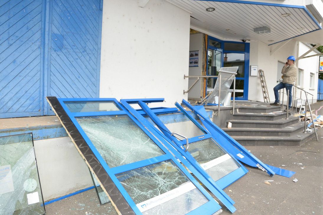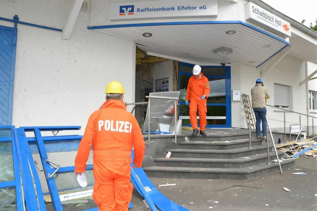 In der Nacht zum 3. Juni sprengten unbekannte Täter den Geldautomaten der Raiffeisenbank Eifeltor in Forst in der Eifel. Aus dem Automaten wurde eine hohe Summe an Bargeld entwendet. Weit höher stellt sich jedoch er durch die Sprengung entstandenen Sachschaden dar, der bei rund 250.000 Euro liegen dürfte. Die in der Bank vorhandene Kamera der Überwachungsanlage wurde von den Tätern mit Farbe besprüht, um Lichtbilder unmöglich zu machen. Täterhinweise liegen bislang nicht vor. Aus früheren Fällen ist bekannt, dass die Täter sich das Objekt und Umfeld vorher ausgiebig anschauten. Es ist durchaus denkbar, dass sie dabei von Zeugen beobachtet wurden. Die Polizei bittet hierzu unter der Rufnummer 0 26 51 / 80 10 um sachdienliche Hinweise zu Personen und Fahrzeugen. Fotos: Mario Zender