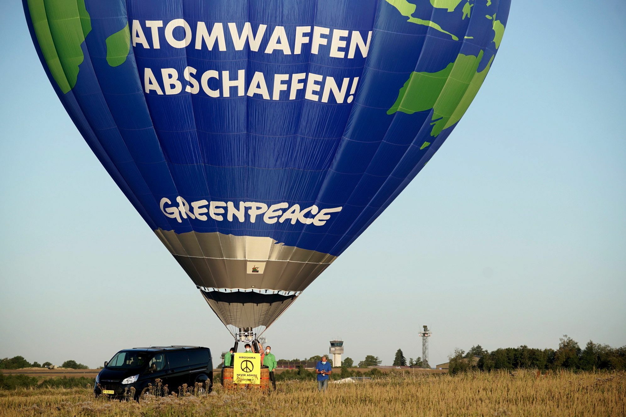 "Atomwaffen abschaffen! – ban nuclear weapons!", steht auf einem Heißluftballon geschrieben. Der Ballon ist vor dem Gelände angebracht, auf dem laut Abrüstungsexperten und -expertinnen etwa 20 US-amerikanische Atombomben lagern, so Greenpeace in einer Pressemitteilung. Auf einem Banner, das Aktivisten halten, steht: "Hiroshima – never again!" Anlass ist der 75. Jahrestag des Atombombenabwurfs auf Hiroshima. "Massentötungen wie durch die Atombombe auf Hiroshima dürfen nie wieder geschehen", sagt Christoph von Lieven, Greenpeace-Sprecher für atomare Abrüstung. "Die Bundesregierung muss dafür sorgen, dass mit den US-Soldaten auch die amerikanischen Atombomben aus Büchel abgezogen werden." US-Präsident Trump hat Ende Juli angekündigt, fast 12.000 in Deutschland stationierte US-amerikanische Soldaten abzuziehen. In einer von Greenpeace beauftragten Studie hat Physikerin und Atomexpertin Oda Becker erstmals öffentlich mögliche Folgen eines Atombombenabwurfs auf Deutschland dargelegt. Die Studie zeige, dass bei einer Atombombenexplosion in Deutschland mit hunderttausenden Toten gerechnet werden müsse. "Die Bomben in Büchel bedrohen die Sicherheit der Menschen in Deutschland und Osteuropa. Deutschland darf nicht länger potenzieller Aggressor und mögliche Zielscheibe eines Atomangriffs sein", so von Lieven. "Als klaren Schritt atomarer Abrüstung muss die Bundesregierung Deutschland aus der nuklearen Teilhabe führen." Deutschland sei Teil der erweiterten nuklearen Teilhabe. Dies bedeute, dass deutsche Piloten und Flugzeuge im Kriegsfall die in Büchel stationierten US-amerikanischen Atombomben in ihr Ziel fliegen. Foto: Greenpeace www.greenpeace.de