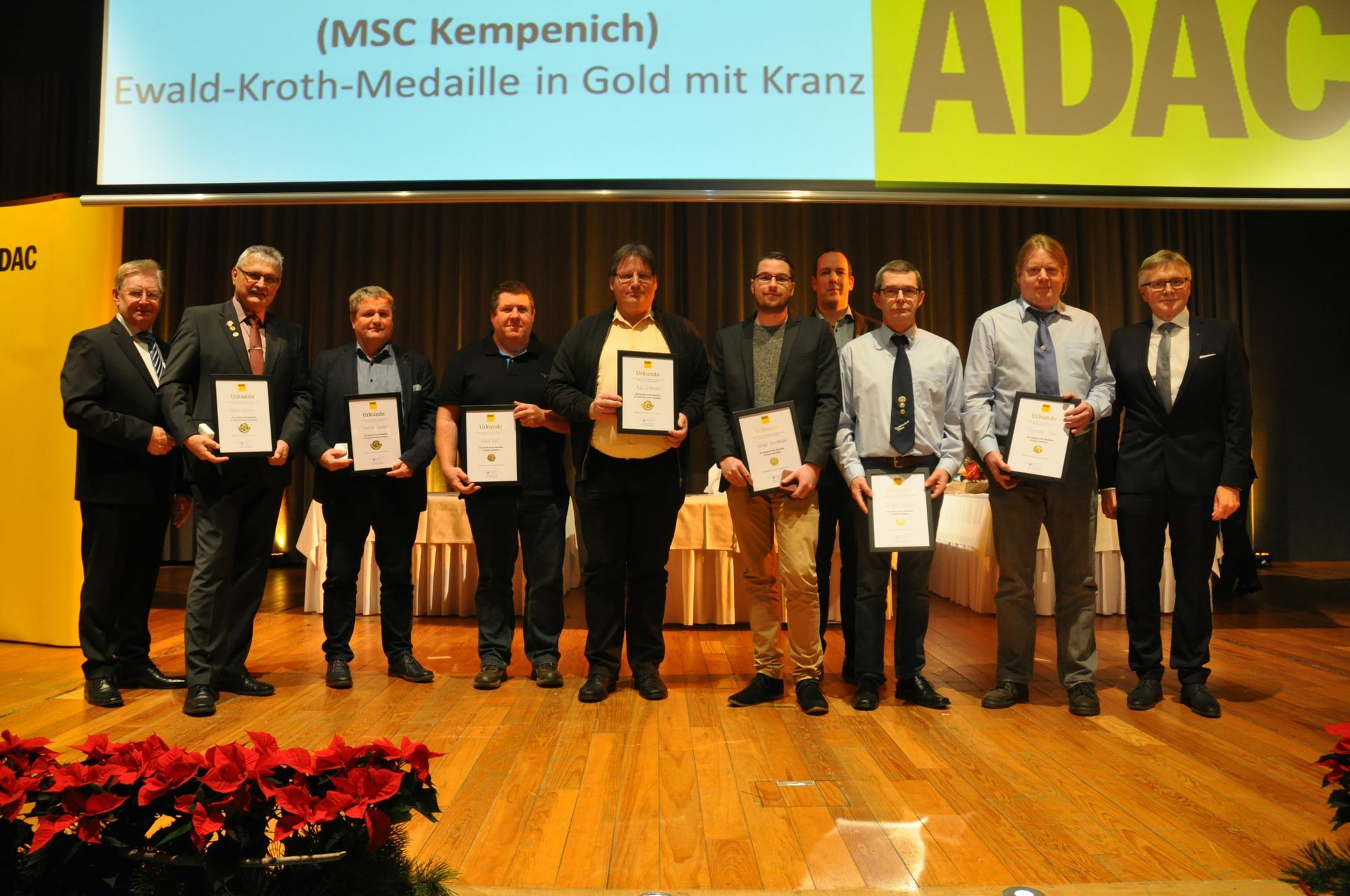 In Zeiten, in denen der Klimaschutz die Schlagzeilen beherrscht, wird auch der Motorsport kritisch hinterfragt. "Ich glaube, dass der Motorsport auch in der Zukunft ein Technologietreiber ist", brach Sport-Vorstand Franz-Rudolf Ubach im Rahmen der Sportlerehrung des ADAC Mittelrhein eine Lanze für die sportlichen Aktivitäten auf zwei und vier Rädern sowie auf dem Wasser. Ohne die aktiven Ehrenamtler, die meist im Hintergrund die Strippen ziehen, würde sich im regionalen Motorsport aber sicher nur wenig bewegen. Zwei Protagonisten des Sportfahrerkreises (SFK) Ulmen wurden im Rahmen der Ehrung für ihre zehnjährige ehrenamtliche Tätigkeit ausgezeichnet. Jürgen Weirich ist als Sportleiter im Vorstand des Vereins aktiv und auf vielen Rallye-Pisten der Region bis hin zu den Einsätzen im Rahmen der Rallye Deutschland sowie am Nürburgring zu finden. Viele Veranstalter greifen immer wieder gerne auf seine Unterstützung in leitenden Funktionen zurück. Thomas Pfahl kümmert sich als Schriftführer unter anderem um die Außendarstellung des Vereins, ist aber auch seit vielen Jahren bei verschiedenen Veranstaltungen an der Strecke im Einsatz. Außerdem zeichnet er als einer der Fahrtleiter für die Durchführung der beliebten "Rallye 66 – Orientierungsfahrt rund ums Ulmener Maar" mitverantwortlich. Für ihr Engagement bekamen beide die Ewald-Kroth-Medaille in Gold verliehen. Foto: Pauly www.sfk-ulmen.de