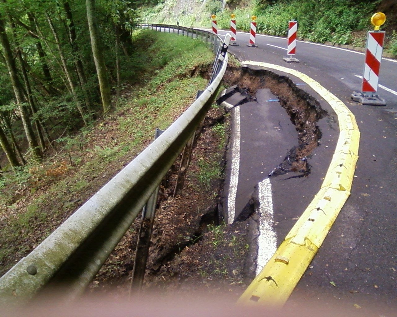 Auf einer Länge von etwa 40 Metern war der talseitige Fahrbahnrand der K 10 komplett abgerissen. Für die rund dreimonatige Bauzeit wird die Kreisstraße zwischen Beuren und der L 103 voll gesperrt. Es wird eine großräumige Umleitung vom Eifelort über die L 106 nach Bremm, weiter über die B 49 nach Alf und über die L 103 bis nach Bad Bertrich sowie in entgegengesetzter Richtung eingerichtet. Die am Rand der Fahrbahn anstehenden Böden werden auf einer Gesamtlänge von 65 Metern mit einer Zementsuspension vermischt und verfestigt. Weiterhin wird die bergseitige Böschung um rund einen Meter zurückverlegt. Die Gesamtkosten belaufen sich auf circa 250.000 Euro und werden vom Landkreis Cochem-Zell getragen. Die Maßnahme wird mit 70 Prozent vom Land Rheinland-Pfalz gefördert. Foto: Archiv/LBM www.lbm.rlp.de