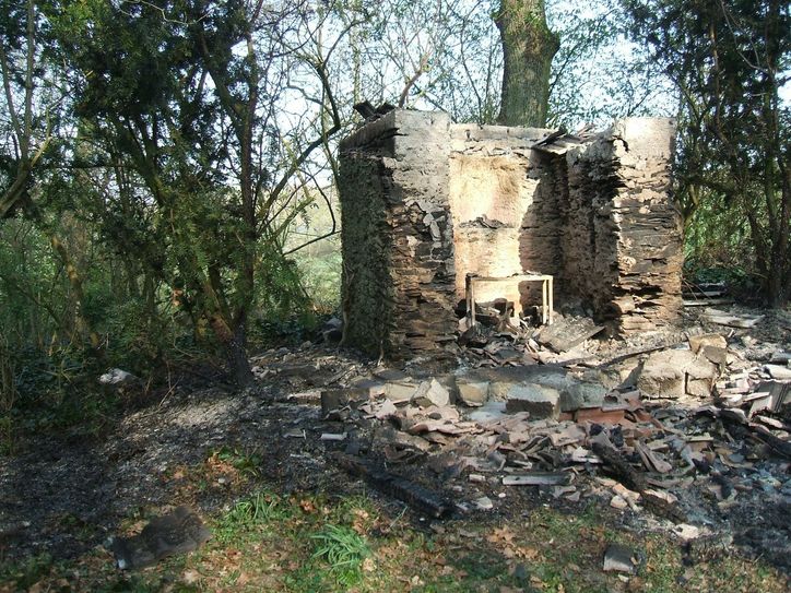 Das Heiligenhäuschen im Distrikt Aderlich wurde durch das Feuer völlig zerstört. Die Polizei Cochem hat ein Ermittlungsverfahren wegen Brandstiftung eingeleitet und bittet um Hinweise unter der Rufnummer 0 26 71 / 98 40. Foto: Polizei