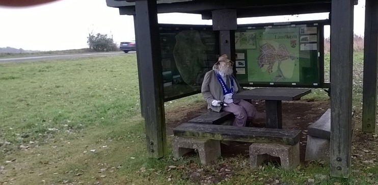 Für reichlich Verwirrung und einen Polizeieinsatz hat eine lebensechte und große Puppe gesorgt, die an einer Infotafel der Gemeinde Landkern weithin sichtbar und wohl etwas unbeholfen herumgesessen hat.