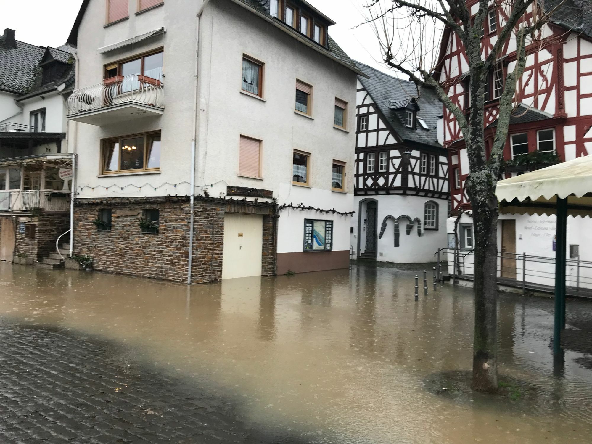 Moselaufwärts ist der Trend wieder positiv: An den Pegeln Trier und Zeltingen wird ab Mittwochmorgen, 5. Februar, wieder mit fallenden Pegelständen gerechnet. Derweil wird in den Moselgemeinden der VG Cochem bereits kräftig geräumt. In den moselnahen Lagen schwappt das Wasser bereits in die Häuser. In Bruttig-Fankel wurden zudem die Grundschulkinder bereits früher nach Hause geschickt. Weitere Informationen im Internet unter: www.hochwasser-rlp.de Fotos: Zender