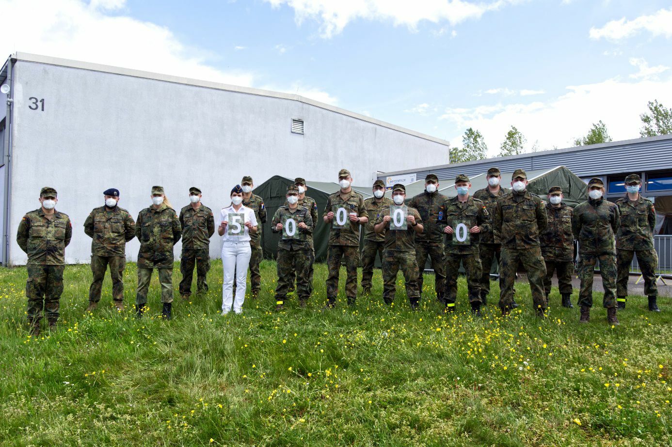Rund 40 Soldatinnen und Soldaten aus Cochem übernehmen im Impfzentrum Lebach zwei der drei Schichten. Im Rahmen der Amtshilfe sind Angehörige des Taktischen Luftwaffengeschwaders 33 als "Helfende Hände" in die Organisation rund um die Impfungen eingebunden. Sie unterstützen bei der Anmeldung und Betreuung der Impflinge und sorgen so für einen reibungslosen Ablauf. Angehörige des Sanitätsunterstützungszentrums Cochem übernehmen gemeinsam mit zusätzlichen Sanitätskräften die medizinische Beratung vor dem kleinen Pieks und das Spritzen des Impfstoffes. Zu ihnen gehört auch Oberfeldarzt Oliver Wiß. Der gebürtige Cochemer ist Leiter des Sanitätsversorgungszentrums in Kastellaun, das dem Sanitätsunterstützungszentrum in Cochem unterstellt ist. In Lebach ist er der Ärztliche Leiter. Im Wechsel mit anderen ist er auch für die Organisation der Sanitätskräfte verantwortlich. Er muss im Zweifelsfall entscheiden, ob jemand geimpft werden kann oder nicht. "Uns wird von der Bevölkerung viel Wertschätzung entgegengebracht. Das gibt uns ein gutes Gefühl"; so Wiß. Die Menschen würden vor allem die gute Organisation und die Freundlichkeit des Personals schätzen. Ein beruhigendes und freundliches Wort hat Stabsunteroffizier Christina Claus für ihre Patienten immer parat, wenn jemand beim Anblick der Spritze nervös wird. "Wir erklären unseren Patienten hier alles genau und wollen ihnen die Angst vor der Spritze nehmen." Sie gehört in Lebach seit den Impfanfängen im Februar zum medizinischen Fachpersonal und verabreicht Impfdosen. Sonst ist sie im Sanitätsversorgungszentrum in Cochem für die Untersuchung von Soldatinnen und Soldaten zuständig. Das Impfzentrum in der Graf-Haeseler-Kaserne in Lebach wird von der Bevölkerung gut angenommen. Rund um die Uhr wird hier gegen Corona geimpft. Nachts ist die Bereitschaft, sich impfen zu lassen, genau so groß wie tagsüber. Egal ob 15 oder 5 Uhr - innerhalb von 24 Stunden werden knapp 1.000 Impfdosen verabreicht. Die Einrichtung gehört zum Ministerium für Soziales, Gesundheit, Frauen und Familie (MSGFF) und wird von der Bundeswehr betrieben. Foto: M. Euler