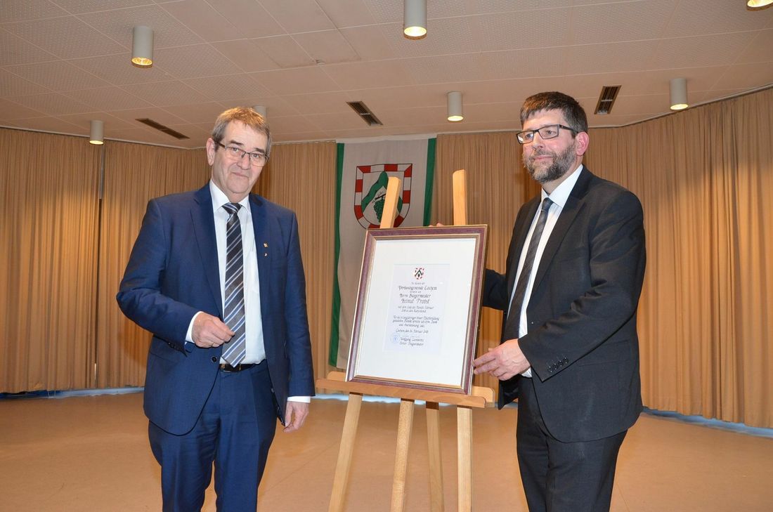 Wer Helmut Probst am Montag bei seiner offiziellen Verabschiedung sah, hat gemerkt, dass ihn dieser Tag emotional bewegt. Je näher der Termin des Abschiedes kam, je nervöser wurde Probst. Und das hat seinen Grund: Denn der Vollblutpolitiker hätte gerne noch einige Jahre länger das Zepter bei der VG in der Hand gehalten. Doch so sehr sein Herz an seinem Amt als Bürgermeister hing, so schwach ist es auch aus medizinischer Sicht. Probst scheidet nicht aus, weil er amtsmüde ist, sondern weil seine Gesundheit die 15-Stunden-Tage des Bürgermeisters nicht mehr mitmacht. Ein Berufsleben in der Verwaltung Helmut Probst war sein gesamtes Berufsleben in der öffentlichen Verwaltung tätig. Und seine berufliche Karriere ist ein Paradebeispiel, wie man es vom kleinen Verwaltungslehrling zum Chef einer großen Behörde schafft. Nach der Volksschule fing der Ellenzer, der wie er selbst sagt, aus kleinen Verhältnissen stammt, 1966 eine Verwaltungslehre beim damaligen Kreis Cochem an. 1976 wird er zum Beamten auf Lebenszeit ernannt - allerdings im Mittleren Dienst. Doch Probst ist ehrgeizig und er schafft die Laufbahnprüfung für den Gehobenen Dienst mit der Note »sehr gut«. 1986 steigt er in der Kreisverwaltung zum Leiter der Bauabteilung auf - mit Mitte 30 eine Bilderbuchkarriere. Aber auch in der Politik hinterlässt er seit Teenagerzeiten Spuren und 2001 tritt der damalige Beigeordnete als CDU-Kandidat bei der Wahl zum Bürgermeister der VG Cochem-Land an und gewinnt. Am 1. März 2002 wird Probst als Bürgermeister eingeführt. Durch die Fusionen mit der Stadt Cochem und der VG Treis-Karden musste er sich sogar dreimal zur Wahl stellen, obwohl er insgesamt nur zwei Legislaturperioden amtierte. "Zwei Fusionen gestemmt. Das hat viel Kraft gekostet", attestierte ihm sein Nachfolger, Wolfgang Lambertz. Der noch amtierende Beigeordnete der VG Cochem überreichte Helmut Probst auch die Entlassungsurkunde. "Bürgermeister mit Herzblut" Dass Probst bei Kollegen und Mitarbeitern geschätzt war und ist, war in den Grußworten - sowohl aus der Politik als auch aus der Verwaltung - zu hören. Er ist sieben Tage die Woche und 24 Stunden am Tag einer, der aus dem Volk kommt und seine Schäfchen kennt, so die CDU-Kreisvorsitzende Anke Beilstein zu ihrem "politischen Ziehvater", der ein "Bürgermeister mit viel Herzblut" gewesen sei. Auch wenn sein Schreibtisch selten aufgeräumt gewesen sei, erzählte Beilstein mit einem Augenzwinkern, habe er immer gewusst, wo er etwas suchen musste. Probst sei, so die einhellige Würdigung, nie abgehoben gewesen. Er habe das Menschliche nicht vergessen. "Bei allem beruflichen Einsatz hat er den Humor immer behalten", sagte Landrat Manfred Schnur und hat ihn damit gut charakterisiert. Fotos: Zender