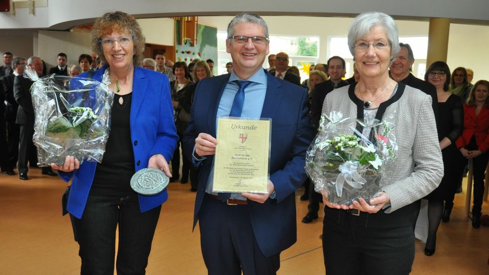 Stadtbürgermeister Gerhard Weber hatte bewusst das "Haus für Kind und Familie" des Bildungs- und Pflegeheims St. Martin als Ort des Empfangs ausgewählt, denn zum einen feiert die Düngenheimer Einrichtung 2016 ihr 50-jähriges Bestehen und zum anderen zeigte es auch den Stellenwert den Kinder und Familie haben sollen. Zudem war die Anwesenheit von Flüchtlingen ein deutliches Zeichen der Solidarität. Im Rahmen eines Rückblicks zählte der Stadtbürgermeister wichtige Punkte der städtischen Entwicklung auf. Dabei verwies Weber unter anderem auf das Projekt "Energiedorf", die Fertigstellung des Zentralplatzes und das erste "Weinfest". In diesem Jahr sollen unter anderem ein neues Bau- und ein neues Gewerbegebiet auf den Weg gebracht werden. Zudem soll in Zusammenarbeit mit der Verbandsgemeinde der Pommerbach wieder offen gelegt werden. Der Neujahrsempfang ist in Kaisersesch aber auch immer die Gelegenheit danke zu sagen. So wurde der Verein "Durchblick", der sozial Schwache unterstützt, mit der Verdienstmedaille der Stadt ausgezeichnet. Darüber hinaus ehrte Weber noch erfolgreiche Auszubildende von Kaisersescher Betrieben und zwei junge Männer die Zivilcourage gezeigt haben. Fotos: Pauly www.kaisersesch.org