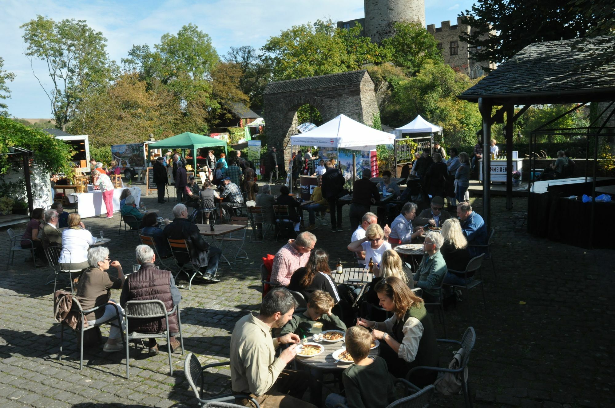 Wenn es auf der Burg Pyrmont einmal im Jahr »Wild« heißt, scheint gutes Wetter garantiert. Unter einem stahlblauen Himmel bei sommerlichen Temperaturen präsentierten Erzeuger aus der Region ihre Produkte - vom Wein über den Roten Moselweinbergpfirsich, Eier, Nudeln, Honig bis hin zu Aronia und Holunder. Es konnte probiert und natürlich auch gekauft werden. Zudem informierten die Touristiker der VG Kaisersesch, der Jagdverband und das Forstamt über das Leben in und mit der Natur. Musikalisch sorgte unter anderem die Jagdhornbläsergruppe "Wilde Endert" für Unterhaltung. Und für den Hunger durften Wildspezialitäten und Kuchen auch nicht fehlen. Ein perfekter Tag in und mit der Natur... Fotos: Pauly www.kaisersesch.de www.burg-pyrmont.de