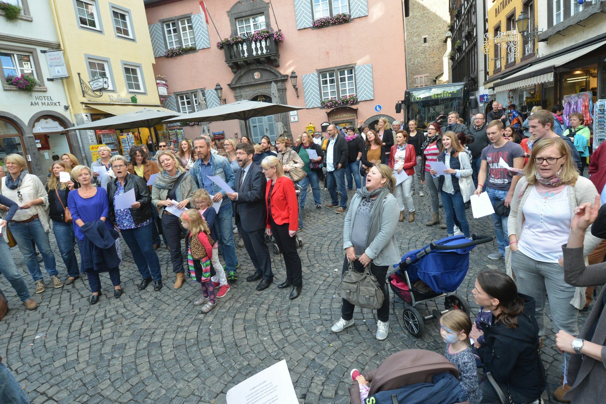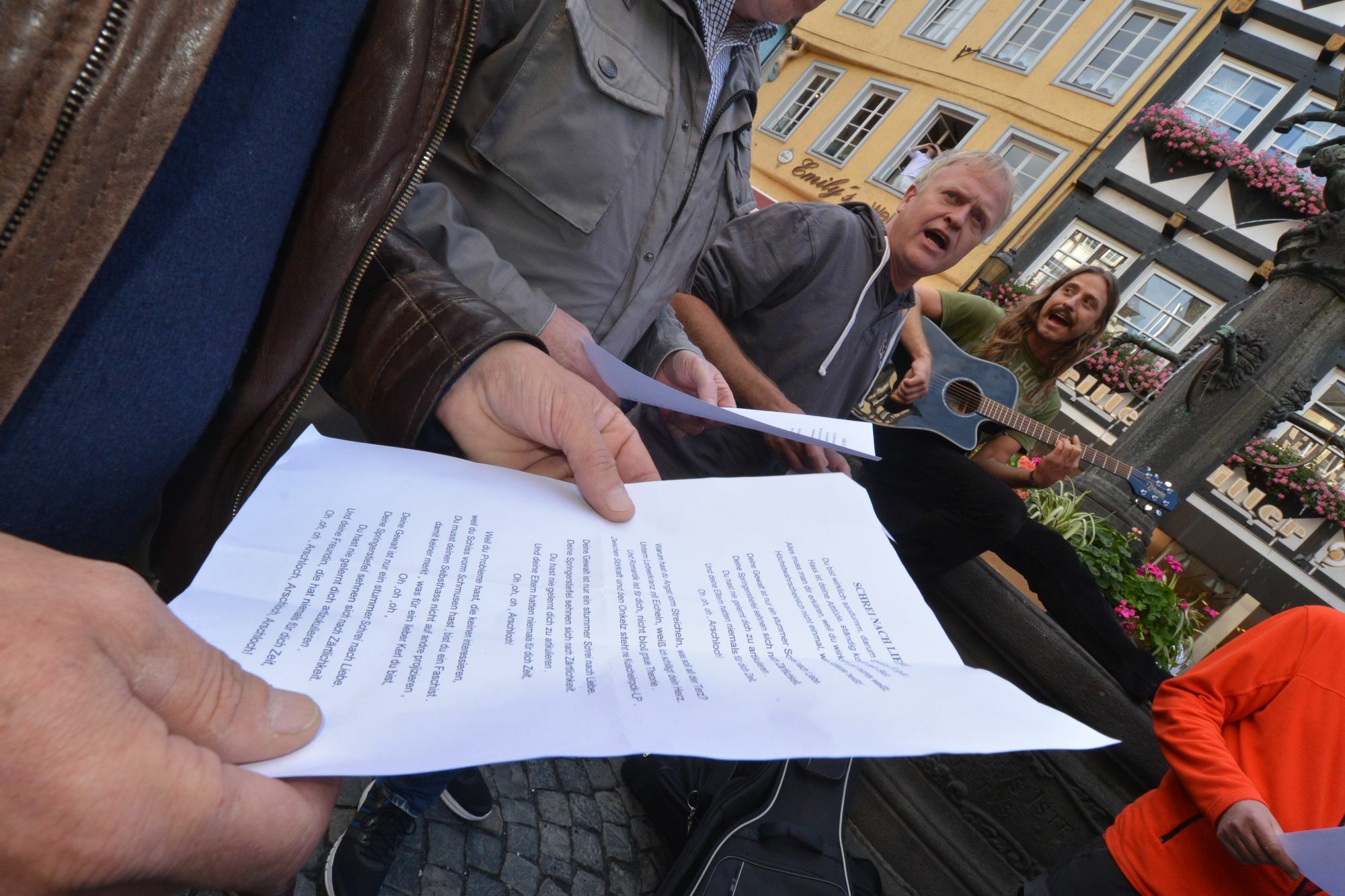 Und das wie in 100 anderen deutschen Städten unter dem Motto "Aktion Arschloch" mit einem Song der "Ärzte" in dem es heißt: "Deine Gewalt ist nur ein stummer Schrei nach Liebe. Deine Springerstiefel sehnen sich nach Zärtlichkeit. Du hast nie gelernt dich artizukulieren .Und deine Freundin, die hat niemals für dich Zeit. Oh ,oh, oh , Arschloch, Arschloch, Arschloch!" schallte es aus mehr als 100 Kehlen über den Cochemer Marktplatz. Die "Ärzte" wollen übrigens alle Einnahmen von "Schrei nach Liebe" als Zeichen gegen Fremdenhass an "Pro Asyl" spenden.
