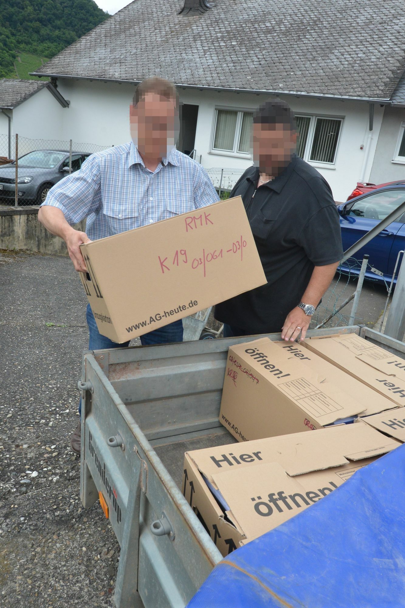 Besonders umfangreiche Unterlagen wurden dabei im Gebäude der Raiffeisenbank in Bruttig-Fankel sichergestellt. Die Menge der Akten war so groß, dass einer der Steuerfahnder sogar seinen privaten Pkw-Anhänger dabei hatte. Dieser und zwei weitere Fahrzeuge der Ermittler wurden komplett mit Umzugskartons vollgeladen. Insgesamt rund 20, alle fein säuberlich beschrifteten und durchnummerierten Kartons packten die Fahnder zusammen und fuhren sie nach Trier in die Hubert-Neuerburg Straße 1. Das ist das Hauptgebäude des Trierer Finanzamtes, in dem auch die Steuerfahndung untergebracht ist. Die Unterlagen werden in den Asservatenraum im dritten Stock des Gebäudes untergestellt und sollen demnächst ausgewertet werden.