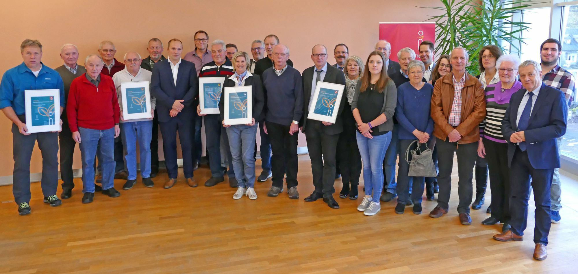 Landrat Manfred Schnur hofft, dass viele weitere Gemeinden dem Anreiz des Klimaschutzpreises folgen und sich mit kleineren Maßnahmen in ihrer Heimatgemeinde engagieren. Nur so könnten die Klimaschutzziele im Landkreis erreicht werden. Möntenich Die Ortsgemeinde Möntenich hatte den Verein zur Förderung der Dorfkultur für die Begrünung des Dorfplatzes für den Preis vorgeschlagen. "Der Verein hat dem Dorfplatz zu altem Glanz verholfen. Durch die neue Begrünung wurde eine bei den Bürgern beliebte Erholungsstätte wieder hergerichtet", betonte Ortsbürgermeister Alois Knieper. Kaifenheim Die Naturschutzgruppe Kaifenheim wurde für den Aufbau von drei Waldbienenhotels zur langfristigen Sicherung der Waldbienenbestände geehrt. Zudem erhielt Herbert Sauerborn die Auszeichnung für das Anbringen von Nistkästen im Gemeindewald. Sauerborn hat in der Region seit zehn Jahren hunderte selbst gefertigte Nistkästen installiert, die er in jedem Herbst für die neue Saison herrichtet und bei Bedarf auch repariert. Kalenborn "In unserer Pfarrei wurde die Kirche durch den Einbau von isolierverglasten Fenstern energetisch saniert. Darüber hinaus wurden die alten Heizkörper ersetzt und die Decke mit Mineralwolle isoliert", stellte Ortsbürgermeister Werner Arenz das Kalenborner Projekt vor. Haserich Warum die Ortsgemeinde Haserich die Dorfgemeinschaft für den Klimaschutzpreis vorgeschlagen hat, erläuterte Ortsbürgermeister Bertold Brand: "Die Dorfgemeinschaft legt derzeit in ehrenamtlichem Engagement eine Streuobstwiese mit 50 neuen Apfel-, Birnen-, Zwetschgen-, Süß- und Sauerkirschen- sowie Mirabellenbäumen an. Die Kinder aus Haserich übernehmen die Patenschaften und jedes Kind ist für seinen Baum verantwortlich." Wollmerath Der Karnevalsverein Wollmerath setzt sich mit großem ehrenamtlichen Engagement dafür ein, dass der Bau eines Insektenhotels entlang des Wanderwegs "Maar & Thermen" umgesetzt wird. Rahmen und Dach wurden gezimmert, montiert und am Wanderweg aufgestellt. Zusammen mit den Kindern wurden Naturmaterialien - wie beispielsweise Borken, Tannenzapfen, Moos und Stroh - gesammelt und anschließend in die Abteilungen eingebaut. Der Klimaschutzpreis Der Preis des Energieversorgers wird jährlich für Leistungen verliehen, die in besonderem Maße zur Erhaltung natürlicher oder zur Verbesserung ungünstiger Umweltbedingungen beitragen. Städte und Gemeinden sind aufgerufen, besondere Projekte zur Prämierung vorzuschlagen. Über die Vergabe entscheidet eine Jury. Nähere Informationen unter www.innogy.com/klimaschutzpreis Foto: privat