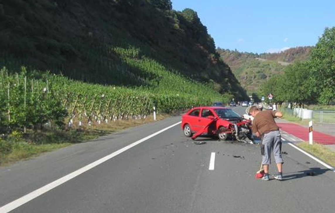 Die Polizei geht im Moment von folgendem Unfallhergang aus: Der Fahrer eines Opel Astra befuhr die B49 in Fahrtrichtung St. Aldegund. Auf Höhe der Einfahrt zur Staustufe bemerkte er, dass er sich mit dem Auto auf dem Seitenstreifen neben der Fahrbahn befand und zog nach links. Dort befand sich ein Ford Focus, der sich bereits neben dem Astra befand, um an diesem vorbeizufahren. Es kam zum Zusammenstoß und der Opel blieb erst im Bereich der Einfahrt zur Staustufe total beschädigt zum Stehen. Der Ford schlitterte über die Gegenfahrbahn, den neben der Fahrbahn liegenden Radweg - auf dem sich zu diesem Zeitpunkt glücklicherweise kein Radfahrer befand - und kam rund 90 Meter weiter im Graben total beschädigt zum Stehen. Bei dem Unfall wurde der Fahrer des Ford Focus leicht verletzt, der Fahrer des Opel blieb unverletzt.