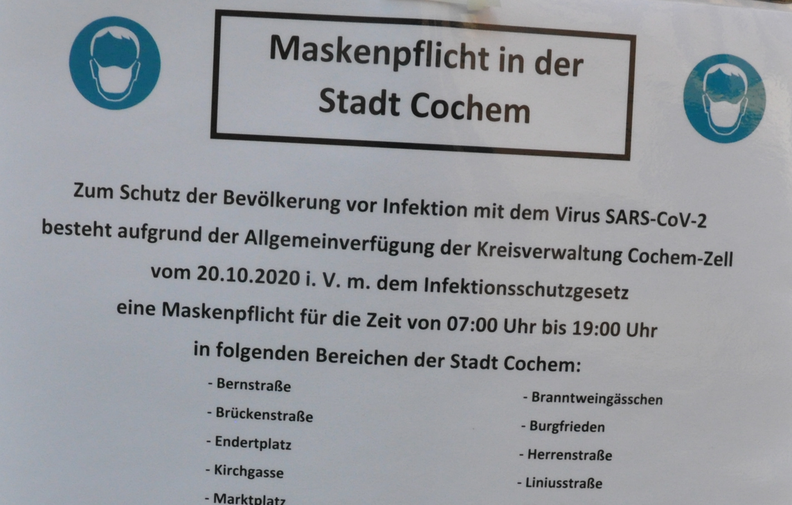 Dass es in der Stadt ruhiger geworden ist, liegt, so Cochems Stadtbürgermeister Walter Schmitz vornehmlich an der Jahreszeit. Allerdings hätten auch die Diskussionen um ein Beherbergungsverbot für Gäste aus Risikogebieten die Menschen verunsichert. "Es gab in der Tourist Information und in den Hotels, Pensionen sowie bei den Anbietern von Ferienwohnungen viele Nachfragen", beschreibt Schmitz die vergangenen Tage. Und jetzt steht auch der Landkreis Cochem-Zell unter der Warnstufe "Rot". Das hat unter anderem die Entscheidung "Maskenpflicht" mit sich gebracht. "Leider waren wir in die Entscheidungen Geltungsbereich und Zeitraum der Maskenpflicht nicht involviert", bemängelt der Stadtbürgermeister. "Ich hätte mir gewünscht, dass die Ravenéstraße und die Alte Moselbrücke im Geltungsbereich liegen würden, denn am Montag beginnt die Schule und dann steigt die Frequenz in der Ravenéstraße wieder und die Gehwege auf der Alten Moselbrücke sind relativ schmal, so dass der gewünschte Abstand nicht immer eingehalten wird. Zudem ist mir die Beschränkung der Maskenpflicht von 7 bis 19 Uhr zu kurz. Der Zeitraum sollte meines Erachtens ausgedehnt werden", formuliert Walter Schmitz seine Kritikpunkte an der Umsetzung der Maskenpflicht. Foto: Pauly www.cochem-zell.de