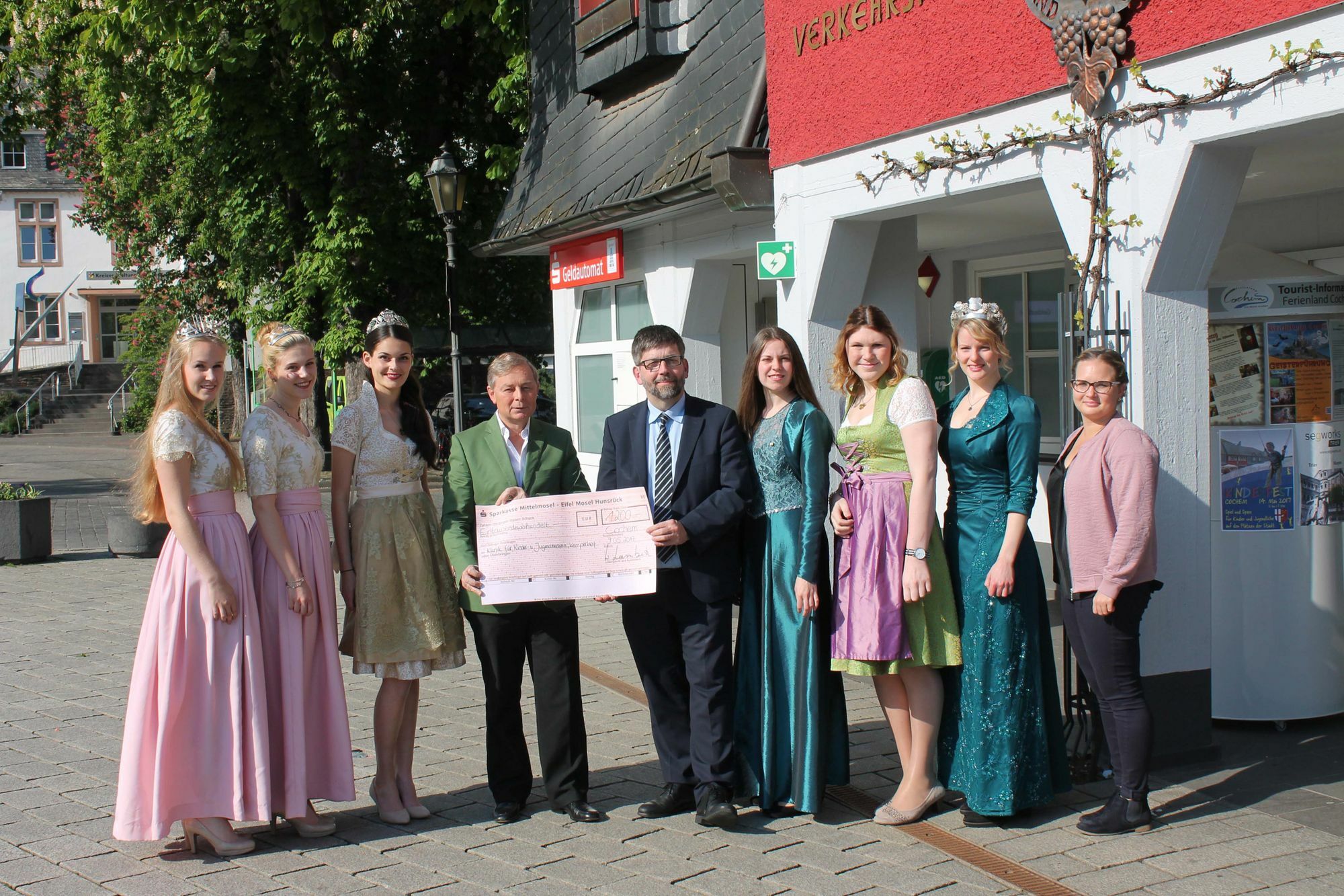 Während des Sternzaubermarktes waren die Majestäten wieder für den guten Zweck aktiv: An zwei Tagen haben sie einen ganz besonderen "Weihnachtskuchen im Glas" verkauft. Insgesamt kam ein Betrag in Höhe von 1.200 Euro zusammen. Der Spendenscheck konnte jetzt gemeinsam mit dem Cochemer Stadtbürgermeister Wolfgang Lambertz an Dr. Rudolf Ferrari übergeben werden. Foto: TI Ferienland Cochem