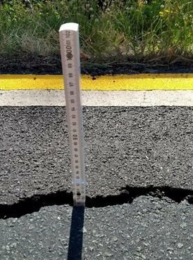 Auf der talseitigen Fahrspur der B 421 ("Zeller Berg")haben sich bis zu 80 Zentimeter tiefe Risse und Setzungen des Untergrundes gebildet.