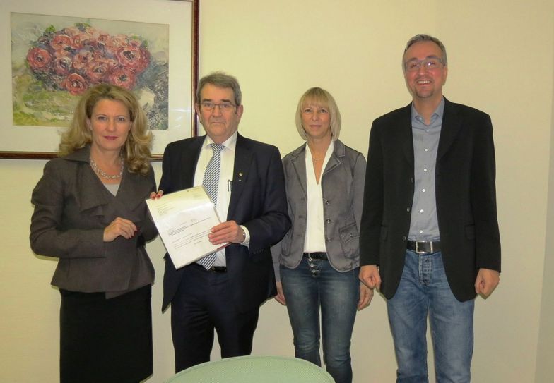 Staatssekretärin Heike Raab übergab jetzt einen entsprechenden Bewilligungsbescheid an VG-Bürgermeister Helmut Probst, Finanzfachbereichsleiterin Petra Junglas und Büroleiter Werner Theisen. Aufgrund der Fusion mit Teilen der ehemaligen VG Treis-Karden wurde der VG Cochem eine Landeszuweisung zur Reduzierung ihrer Investitionskredite von insgesamt 1.395.200 Euro gewährt. 2014 und 2015 konnten bereits 710.665,91 Euro in Anspruch genommen werden. Für 2017 verbleibt noch eine letzte Förderrate von 244.317,91 Euro, die die VG zur Finanzierung ihrer Tilgungsleistungen heranziehen kann. Mit der Fusion hat die VG Cochem einen Kreditanteil der ehemaligen VG Treis-Karden in Höhe von rund 1.732.640 Euro übernommen. Die Investitionsverschuldung lag Ende 2014 bei rund 8.623.000 Euro. Ende 2016 belief sich die Investitionsverschuldung der VG Cochem auf 7.277.000 Euro. Foto: privat www.vgcochem.de