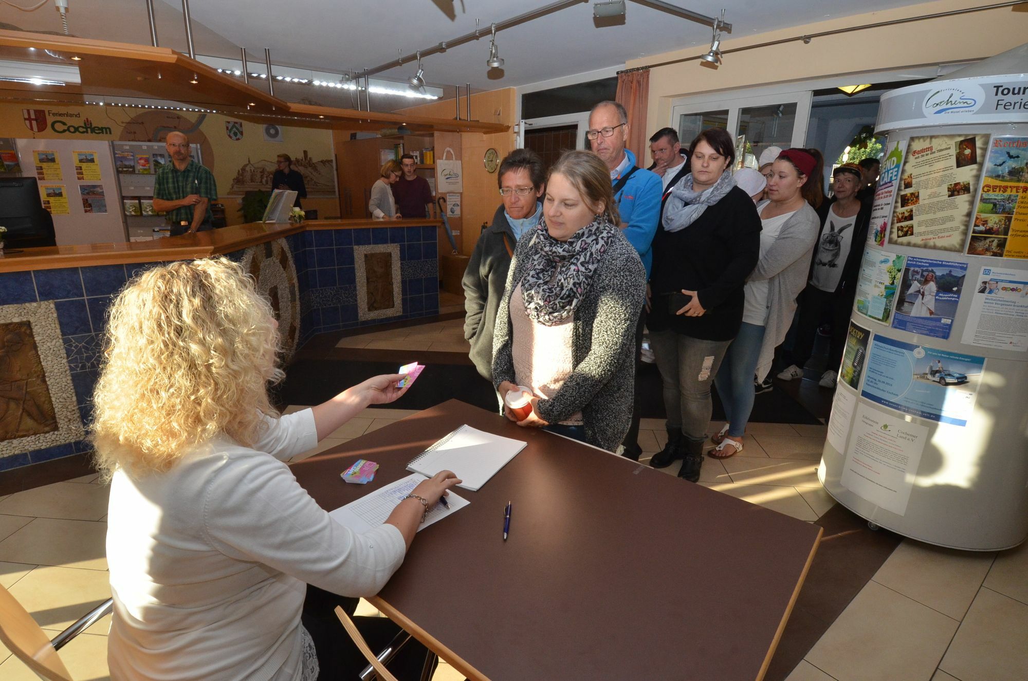 Bereits in aller Frühe standen Fans an den verschiedenen Ausgabestellen in Cochem an, um eine der kostenlosen Eintrittskarten zu bekommen. Insgsamt 1000 Fans können am Sonntag im Bauhof der Stadt bei dem „kuscheligen Konzert“ dabei sein. Denn am Sonntag stattet der "Strassenunterhaltungsdienst" Cochem und seinem Jugendcafè einen Besuch ab (https://www.facebook.com/Strassenunterhaltungsdienst/?fref=ts) und bringt - so WochenSpiegel-Informationen - Xavier Naidoo und die Söhne Mannheims mit. Bürgermeister Wolfgang Lambertz: „Ich bin begeistert über die große Resonanz. Viele Menschen standen bereits seit 7.30 Uhr vor der Stadtverwaltung und haben auf die Öffnung des Rathauses oder der Tourist-Information gewartet. Auch ich freue mich darüber, dass durch die Unterstützung des Jugendcafes der `Straßenunterhaltungsdienst` nach Cochem kommt." Um 9.30 Uhr waren dann alle Karten weg! Fotos: Zender