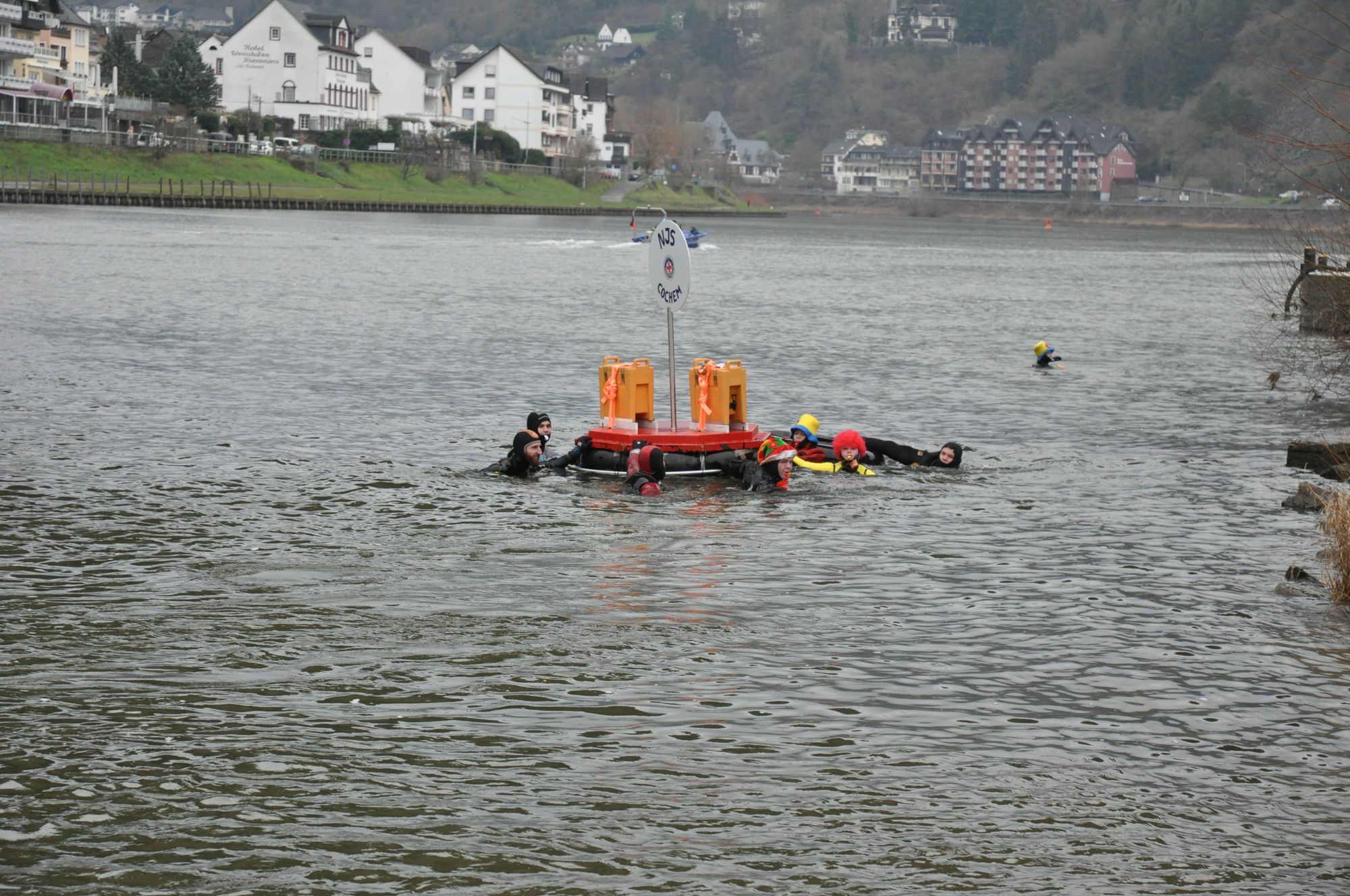 Es gibt sicher einfachere Wege um von Ernst nach Cochem zu kommen, als die Mosel. Beim Neujahrsschwimmen gibt es für die unerschrockenen Neoprenträger keine Alternative. Was muss, das muss und das zum 31. Mal ausgerichtet von der DRK Wasserwacht Cochem. Da am Samstag auch im Rhein bei Düsseldorf "angebadet" wurde, blieb die Mosel von einem großen Ansturm "verschont". Da reichte es auch, dass der Cochemer Stadtbürgermeister Walter Schmitz der Fanfare nur ein "zartes" Hupen als Startsignal entlockte. Zum 30. Mal war Hans-Peter Stein, Technischer Leiter der DRK Wasserwacht Cochem, mit von der Partie. Aber nicht nur er vertrat die Ehre der Steins, denn im Schlepp hatte er seinen Sohn Julian (12), der nach dem Neujahrsschwimmen in der Erft bei Neuss jetzt auch das "Heimspiel" in der Mosel anging. "Jetzt weiß ich, was auf mich zukommt", gab er routiniert vor dem Start zum Protokoll. Aus Neuss waren auch Uschi und Eckhardt Schneider angereist, die den befreundeten Wasserwachtlern beim Ausschenken von wärmendem Kakao halfen - und das am 62. Geburtstag von Eckhardt. "Unsere Wasserwachten sind seit mehr als 20 Jahren befreundet und wir sind auch im kommenden Jahr wieder an der Mosel mit dabei", versprach das Geburtstagskind. Es war im wahrsten Sinne des Wortes eine sehr familiäre Veranstaltung. Das Paradebeispiel ist die Familie Vogt aus Hambuch. Marco und Ingrid hatten in diesem Jahr ihre Tochter Maren fürs Mitschwimmen überzeugt. Die bibberte zwar nach dem Erreichen der Endertmündung in Cochem wie Espenlaub, aber ihre Eltern versicherten ihr, dass die Mosel im vergangenen Jahr "vieeeel kälter" war! Fotos: Pauly