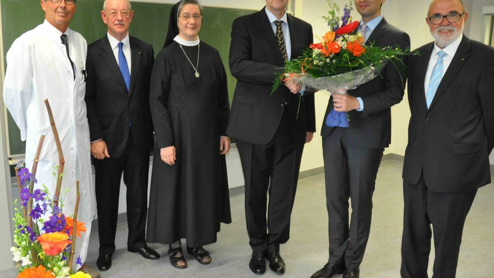 Das Krankenhaus-Team habe lange auf den neuen Chefarzt gewartet, formulierte es Dr. Joachim Lux, Ärztlicher Direktor und Chefarzt der Fachabteilung Anästhesiologie und Intensivmedizin, in der Begrüßung von Dr. med. Detlef Marx. Der war zuletzt im Bethlehem Gesundheitszentrum Stolberg bei Aachen als Oberarzt im Bereich Innere Medizin, Gastroenterologie und Palliativmedizin tätig. Hier war er auch mit der Intensiv- und Notfallmedizin betraut und als Dozent und Prüfer in der Krankenpflegeschule tätig. Zudem studierte er Anfang der 90er Jahre die chinesische Sprache und traditionelle chinesische Medizin in China. "Mein Ziel ist es die Abteilung für Innere Medizin hier im Marienkrankenhaus weiter auszubauen und mit meinem Team sowie anderen Kollegen gemeinsam den Patienten künftig noch mehr Behandlungsmöglichkeiten anzubieten und sie optimal zu betreuen", beschrieb der "Neue" seinen Anspruch. Mit Frau und Tochter, die kurz vor dem Abitur stehend ebenfalls Medizin studieren möchte, will er zukünftig in Cochem leben und Land und Leute näher kennenlernen. Das passt zu den von Geschäftsführer Thomas Wagner beschriebenen Charakterzügen des neuen Chefarztes: "Sie sind ein Mensch, der den Menschen zugewandt ist", so Wagner. Um seine Ziele umzusetzen, müsse er zudem - bildlich gesprochen - drei Disziplinen beherrschen. "Slalom fahren, Langlauf und das Bohren dicker Bretter" gehöre zu den Anforderungen, um Probleme zu lösen, ließ der Geschäftsführer wissen. Weitere Informationen: www.marienkrankenhaus-cochem.de Foto: Pauly