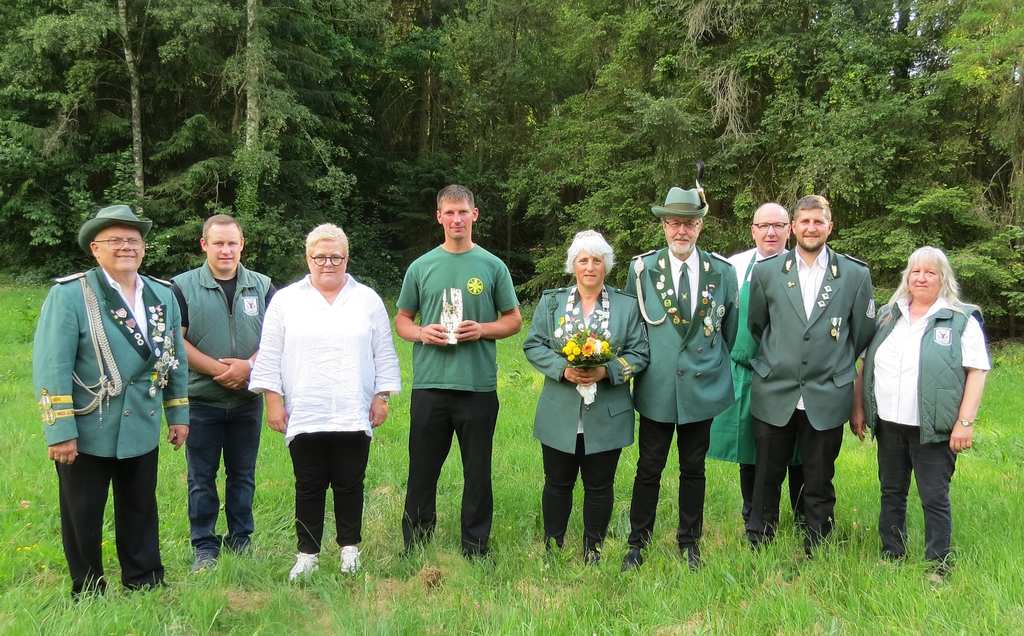 Traditionsgemäß fand das Königsschießen der St. Hubertus Schützen-bruderschaft Urmersbach 1928 e.V. an Fronleichnam (08. Juni 2023) statt. Anlässlich des 95-jährigen Bestehens wurde in diesem Jahr auch ein Schützenkaiser ausgeschossen. Um 14.30 Uhr eröffnete Brudermeisterin Christiane Burger das Kaiser- und Königschießen, begrüßte die Gäste, die Schützenfamilie, die Ehrenmitglieder sowie den scheidenden Silberträger und wünschte allen Schützen ein "Gut Schuss". Der Anschuss auf den Königsvogel wurde von der amtierenden Schützenkönigin Christiane Burger durchgeführt. Nach fairem Wettkampf stand um 16.58 Uhr, nach 124 Schuss, der neue Schützenkönig fest. Michaela Steffes mit seinem Prinzgemahl Michael ist das neue amtierende Schützenkönigspaar 2023 der St. Hubertus Schützenbruderschaft Urmersbach 1928 e.V. Schützenkaiser wurde um 17.28 Uhr nach 117 Schuss, Lucas Eiden. Hier die weiteren Sieger: 1.Scheibenkönigin, Michaela Steffes mit 88 Ringe 2.Scheibenkönigin, Christiane Burger mit 87 Ringen, Königsvogel: Kopf Christiane Burger linker Flügel Lucas Eiden rechter Flügel Jonas Wilhelmi Schweif Thilo Schmitt Rumpf (Schützenkönig) Michaela Steffes Kaiservogel: Kopf Jonas Wilhelmi linker Flügel Thilo Schmitt rechter Flügel Markus Steffes Schweif Michael Steffes Rumpf (Schützenkaiser) Lucas Eiden