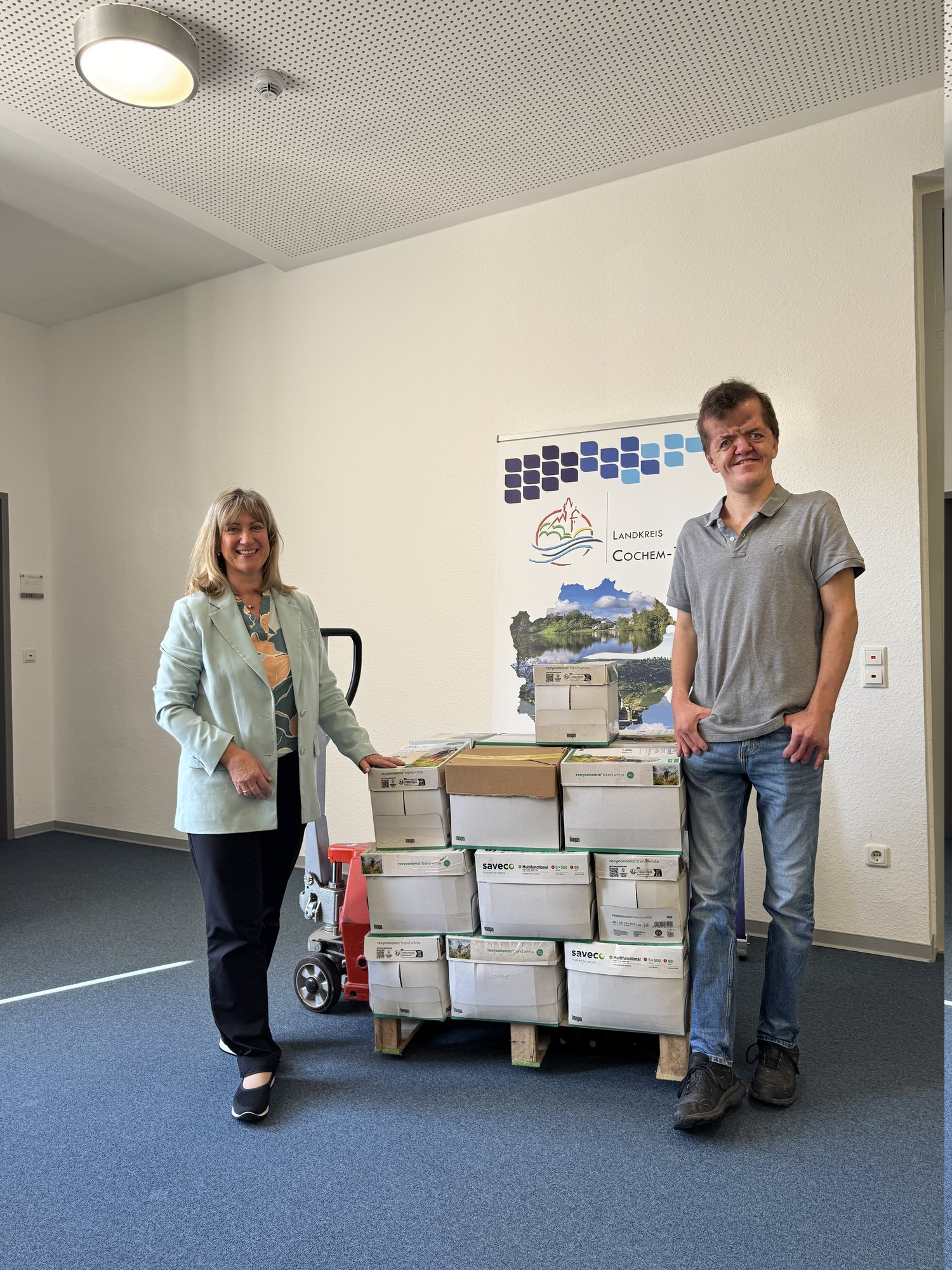 Auch in der Kreisverwaltung Cochem-Zell hat sich der Sammelgedanke längst etabliert. Schon im vergangenen Jahr hatte Landrätin Anke Beilstein die ersten vier Kartons voller Kronkorken an Adrian Justen übergeben. Nun war er zum zweiten Mal in der Verwaltung zu Gast – und konnte sich diesmal über stolze 22 Kartons freuen. Die Zahl zeigt eindrucksvoll, wie der Eifer des jungen Aldegunders auch innerhalb der Verwaltung Kreise gezogen hat.