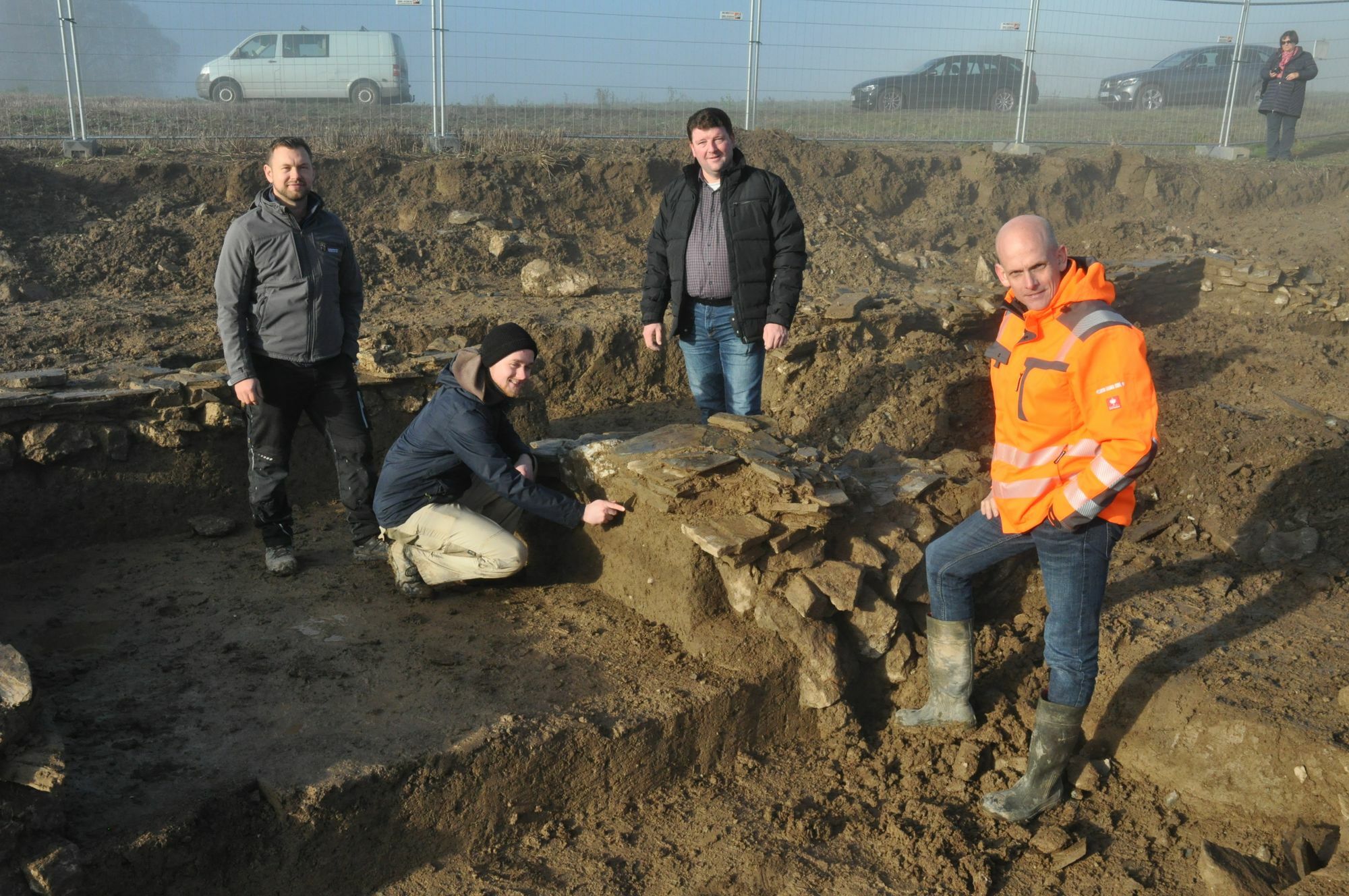 In Müllenbach führen seit Anfang Oktober Archäologen Grabungen aus. Dort, wo demnächst eine Erschließungsstraße für ein Baugebiet entstehen soll, haben Voruntersuchungen die Existenz römischer Bausubstanz nahegelegt. "Wir haben das Gebiet mit Hilfe einer sogenannten geomagnetischen Prospektion unter die Lupe genommen. Das Verfahren könnte man auch als das Anwenden einer modernen Wünschelrute bezeichnen", erzählt Dr. Peter Henrich, Leiter der Außenstelle Koblenz der Direktion Landesarchäologie. Die Vermutung auf Historisches gestoßen zu sein, bewahrheitete sich. Unter der Oberfläche kamen die Überreste eines Nebengebäudes einer römischen "Villa Rustica" aus dem 1. bis 3. Jahrhundert zum Vorschein. Der Platz wurde aber schon in der Steinzeit und der Keltenzeit von Menschen genutzt. Davon zeugt unter anderem ein rund 5000 Jahre altes steinzeitliches Schabwerkzeug, das gefunden wurde. Die Tatsache, dass sich unter der Erdoberfläche Historisches befinden könnte, veranlasste die Gemeinde schnell zu handeln. "Wir standen vor der Frage Umplanung oder Ausgrabung? Wir haben uns für Letzteres entschieden. Alles andere hätte wohl mehr gekostet", erläutert Ortsbürgermeister Andreas Klotz. 15.000 Euro nahm die Gemeinde in die Hand, um das Gebiet zu untersuchen. Ein finanzieller Aufwand, der neben der schnellen Erfassung der archäologischen Funde auch die Kampfmittelfreiheit bestätigte. Nach der Grabung, die Mauern für ein für die Römer ungewöhnlich "krummes Gebäude" ans Tageslicht brachte, kamen unter anderem auch der Boden einer Ölamphore und eine Münze mit dem Bild des Kaisers Clodius Albinus (150-197 n. Chr.) zum Vorschein. "Die Stelle wird jetzt wieder zugeschüttet. Für uns beginnt nun die Dokumentationsarbeit", so Dr. Henrich. Und was geschieht in Müllenbach? "Die Bürgerinnen und Bürger waren von Anfang an sehr interessiert. Es wird sicher einen Vortrag über die Ausgrabungen geben und vielleicht können wir im Alten Pfarrhaus die römische Vergangenheit im Rahmen einer kleinen Ausstellung für die Nachwelt erhalten", so Klotz. Foto: Pauly