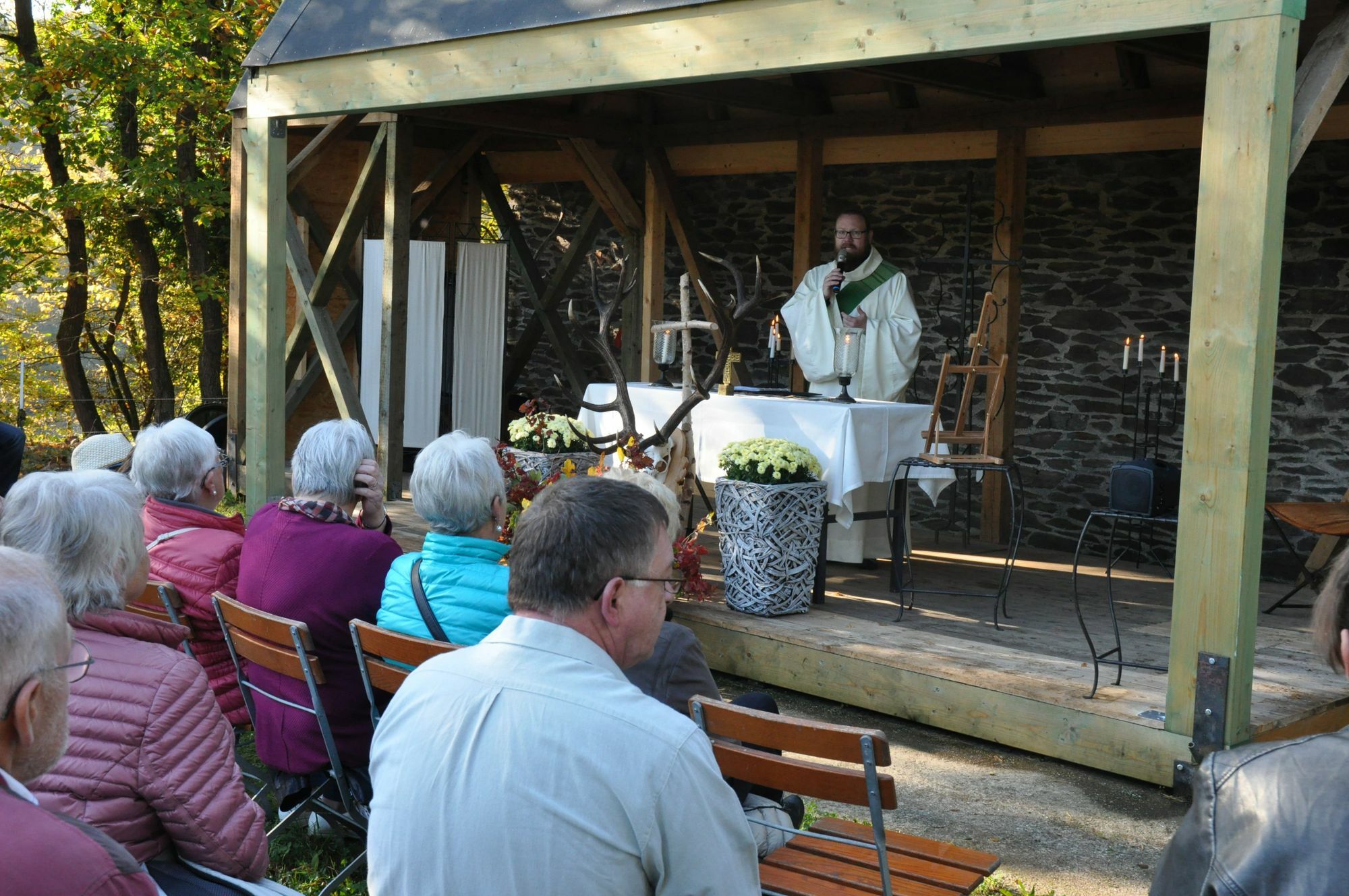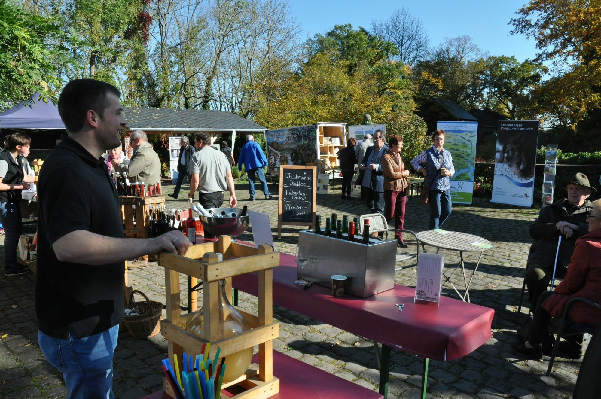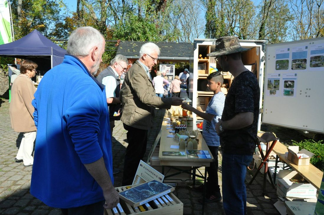 Wenn auf der Pyrmont gefeiert wird, sind auch die Nachbarn zu Gast. Jakob Graf zu Eltz war dementsprechend zu den Petschniggs gekommen, die auf ihrer Burg - zusammen mit der VG Kaisersesch - erstmals einen Thementag rund ums "Wild" und regionale Produkte anbot - von Honig über Wein und Traubensaft bis hin zu Aroniaprodukten. "Wild ist prägend für die Region und in zahlreichen Gastronomie-Betrieben im ,Schieferland' auf der Speisekarte zu finden. Wir möchten insbesondere die Vorzüge von Wildbret präsentieren", so der Kaisersescher VG-Bürgermeister Albert Jung. Zum Start in den "Wild"-Tag zelebrierte Diakon Michael Prezsang eine Hubertusmesse mit Hundesegnung und musikalischer Umrahmung von der Jagdhornbläsergruppe "Wilde Endert" aus Masburg. Darüber hinaus präsentierten sich bei "Wild" auch das Forstamt, der BUND und ein Falkner. Hubertusmesse Nach einer Pause ist die Hubertusmesse in diesem Jahr wieder auf der Burg Pyrmont zelebriert worden. Die Messe wird zur Erinnerung an den Heiligen Hubertus von Lüttich, dessen Namenstag am 3. November gefeiert wird, gehalten. Einer Legende nach war Hubertus ein leidenschaftlich ausschweifender Jäger, der die Erlegung des Wildes als Selbstzweck sah. Später erkannte Hubertus in allen Wesen Geschöpfe göttlichen Ursprungs. Fotos: Pauly www.burg-pyrmont.de