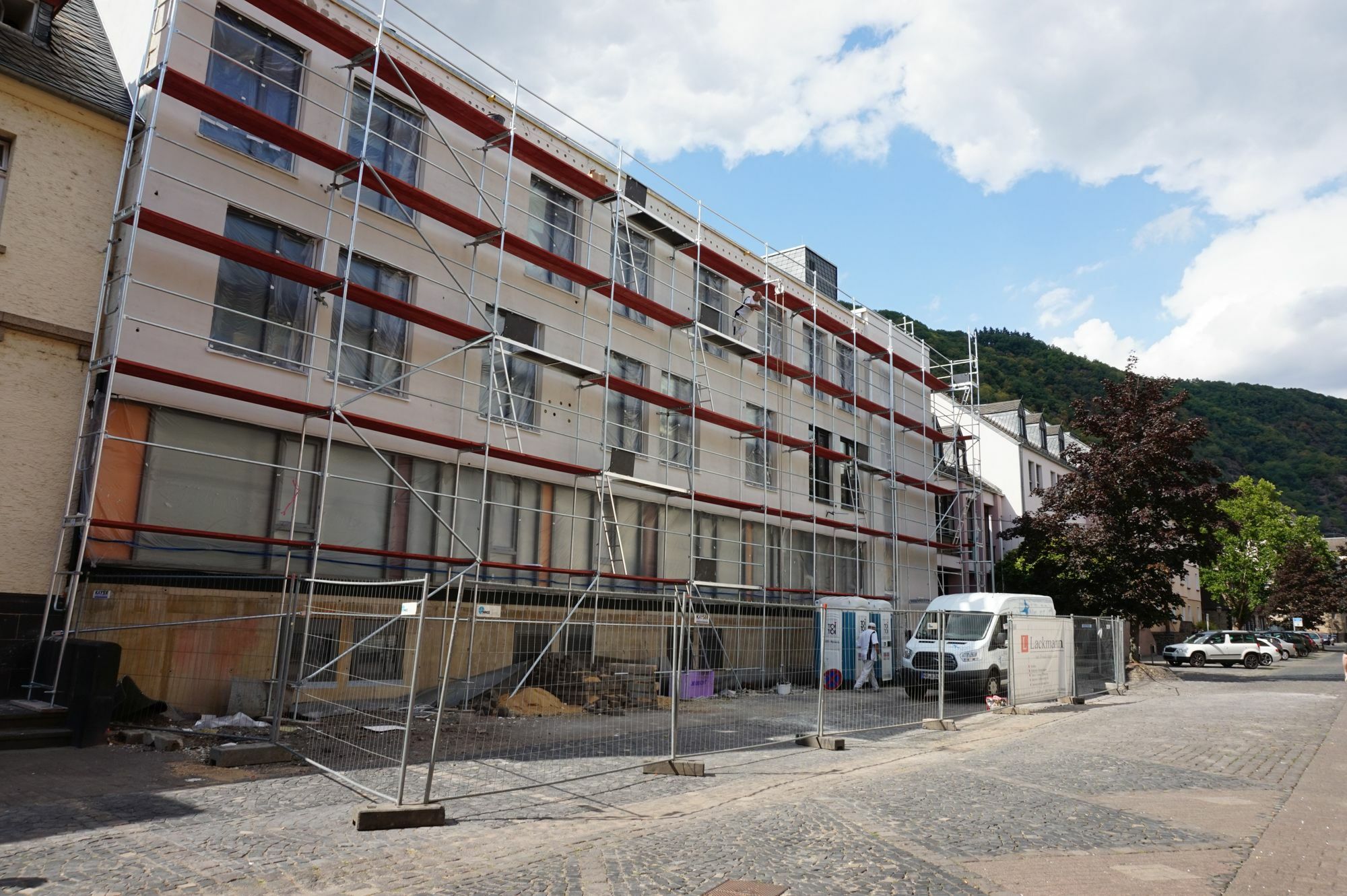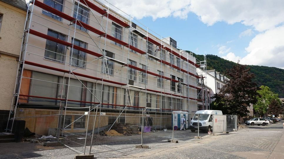 Zur Geschichte: 2009 fusionierten die VG Cochem-Land und die Stadt Cochem zur VG Cochem. Fünf Jahre später erfolgte die zweite Fusion durch Eingliederung von sechs Ortsgemeinden der ehemaligen VG Treis-Karden. Viele Umzüge waren in dieser Zeit notwendig. 2009 wurde die Verwaltung auf die Standorte Ravenéstraße und Am Markt aufgeteilt und 2014 durch die Anmietung von Büroflächen und Aufteilung auf drei und zwischenzeitlich sogar fünf Standorte erweitert. Die Konzentration an einem Standort wurde nach einer Untersuchung im Anschluss an die zweite Fusion durch die Kommunalbau Rheinland-Pfalz GmbH als die wirtschaftlich sinnvollste Lösung ermittelt. Nach der Veräußerung des Rathauses Treis-Karden, Förderverhandlungen mit dem Land, Auswahl des Architekturbüros, Planung und Beschlussfassung in den Gremien konnte vor rund zwei Jahren mit der Baumaßnahme begonnen werden. Zielvorgabe: Der Erweiterungsbau - ein praktischer und moderner "Zweckbau" - soll sich im Stile einer eigenen und zeitgemäßen Architektur vom Bestandsgebäude abgrenzen, sich aber dennoch in das Straßen- und Stadtbild der Stadt Cochem harmonisch einpassen. Alle Räumlichkeiten wurden im laufenden Betrieb bezogen, wobei der Umzug auch Auswirkungen auf das Bestandsgebäude hatte. Der Verwaltung ist es jedoch gelungen, dies in wenigen Tagen zu bewerkstelligen, ohne sie auch nur einen Tag zu schließen. Äußerlich ist das Gebäude noch nicht ganz fertig, wie an dem noch aufgestellten Gerüst unschwer zu erkennen ist. Die Restarbeiten (Außenputz, Natursteinsockel, Kunst am Bau und Pflasterarbeiten) werden noch in den nächsten Wochen fertiggestellt. Die 2015 anvisierte Kostenplanung konnte trotz Baupreisindexierung bis zur Fertigstellung und Mehrkosten aufgrund von Baugrundbelastungen gehalten werden. Die Baukosten: 3,3 Millionen Euro - 500.000 Euro aus der fusionsbedingten Hochzeitsprämie - 200.000 Euro Kostenanteil des Abwasserwerks - 600.000 Euro Veräußerungserlös für das Rathaus Treis-Karden - Rund 1,6 Millionen Euro Landeszuwendung - 400.000 Euro kreditfinanzierter Eigenanteil Foto: VG Cochem www.vgcochem.de