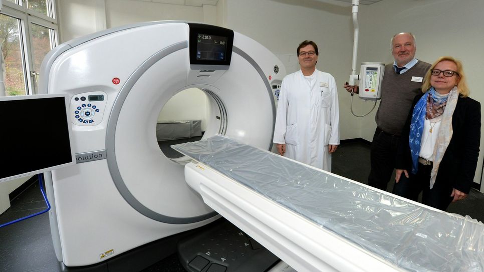 Die Zeit der Bauarbeiten im Klinikum Mittelmosel ist zumindest auf einer Baustelle vorbei: Mit der Anschaffung des neuen medizinischen Großgerätes sind die verschiedenen vorbereitenden Arbeiten, wie der Abbau des alten Gerätes, Renovierungsarbeiten und Einrichtung des neuen CTs abgeschlossen. Am Freitag der vergangenen Woche erfolgte die technische Abnahme und Übergabe an das Krankenhaus. Der Ärztliche Direktor Dr. Harald Levy freute sich: "Mit dem neuen Computertomographen erleben wir einen Quantensprung in der bildgebenden Diagnostik. Man könnte den Schritt vergleichen mit der Entwicklung vom Wählscheibentelefon zum Smartphone." Das neue Gerät verfügt über eine spezialisierte Software. In Millisekunden wird eine Bilddarstellung, bei der unbewusste Bewegungen des Patienten herausgerechnet werden, erzielt. Dadurch wird auch die Strahlenbelastung des Patienten minimiert. Der neue CT mit optimierter Bildqualität wird beispielsweise für diagnostische Untersuchungen bei einem Schlaganfall, Gefäßveränderungen, Unfallfolgen und Verdacht auf Krebserkrankungen eingesetzt. "Es handelt sich um ein high end-Gerät, das nahezu keine Wünsche offen lässt", beschreibt Geschäftsführerin Elisabeth Disteldorf das neue, medizinische Gerät. Foto: Peter Scherer www.krankenhaus-zell.de