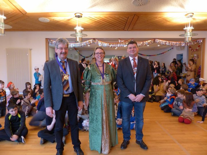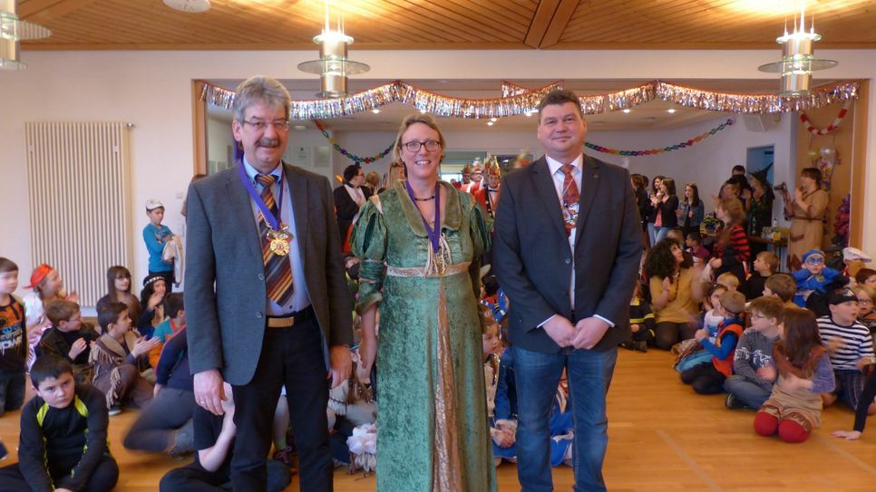 150 Kinder der Burg-Grundschule Ulmen feierten im Sitzungssaal des Rathauses der Verbandsgemeindeverwaltung Ulmen eine lustige Karnevalsparty. Die Turnhalle der Burg-Grundschule Ulmen wird nach der Verwüstung Ende Dzember (der WochenSpiegel berichtete) zurzeit renoviert und die Schule hatte daher keinen geeigneten Raum für ihre traditionelle Karnevalsveranstaltung. Auf Anfrage der Schulleiterin Dorothea Kutscheid hatte VG-Bürgermeister Alfred Steimers spontan den Sitzungssaal des Rathauses für die Schulfeier angeboten. Zur Feier gesellten sich neben VG-Bürgermeister Steimers auch Stadtbürgermeister Thomas Kerpen und die Mitarbeiter der Verwaltung zu den Schülern, um auf die Erstürmung des Rathauses durch die Ulmener Möhnen und die Karnevalsgesellschaft Burgnarren Ulmen zu warten. Der Möhnenvorstand, der Elferrat und die Funkenmariechen maschierten mit viel guter Laune und lautem "Ölme Öwwäh" ins Rathaus ein und waren sichtlich begeistert von dem tollen Empfang mit den vielen Kindern in ihren bunten Kostümen. VG-Bürgermeister Steimers und Stadtbürgermeister Kerpen kapitulierten übrigens sehr schnell. Foto: privat