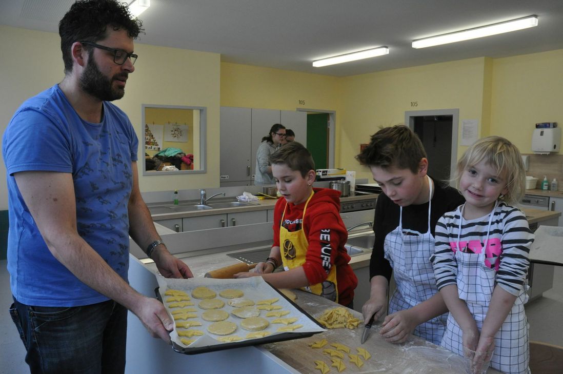 "Jeder hat ein Recht auf ein sicheres Plätzchen": ein doppeldeutiges Angebot hat in der Einladung der Jugendinitiative "Alle in einem Boot" gestanden. Das Angebot der Jugendarbeit des Dekanates Cochem sich mit dem Thema Flucht zu beschäftigen, motivierte 15 Kinder und Jugendliche an einem Samstag in die Schule zu gehen. Der "Auftrag" von Pastoralreferent Frank Hoffmann und Gemeindereferent Bernd Berenz: Plätzchen backen und die Plätzchen mit einer Botschaft auf dem Adventsmarkt in Cochem verteilen. Und diese Botschaft lautete: "Wer flieht, muss alles hinter sich lassen, was er besitzt und was er war." Um die Tragweite darzustellen erzählte Berenz die Flüchtlingsgeschichte eines syrischen Jungen aus der vom Krieg zerstörten Stadt Homs, der in der Region ein "sicheres Plätzchen" gefunden hat. Zwei Jahre nach seiner lebensgefährlichen Flucht über das Meer - in den Händen von Schleppern, die seine Familie mit viel Geld bezahlen musste - macht der Junge mittlerweile sein Fachabitur. "Die Botschaft kam an", freute sich Bernd Berenz über die Resonanz beim Verteilen der Plätzchen, das übrigens mehr als 200 Euro einbrachte, die der Flüchtlingsarbeit zu Gute kommen sollen. Fotos: Pauly www.jucoc.de