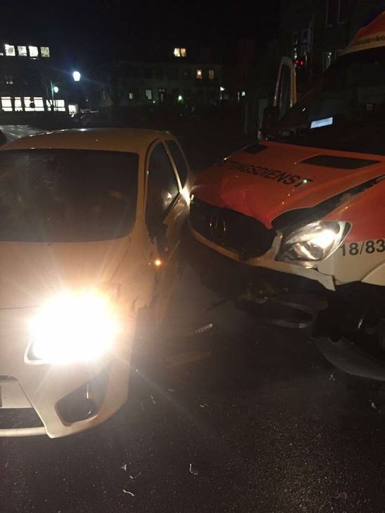 Rettungswagen mit Auto kollidiert