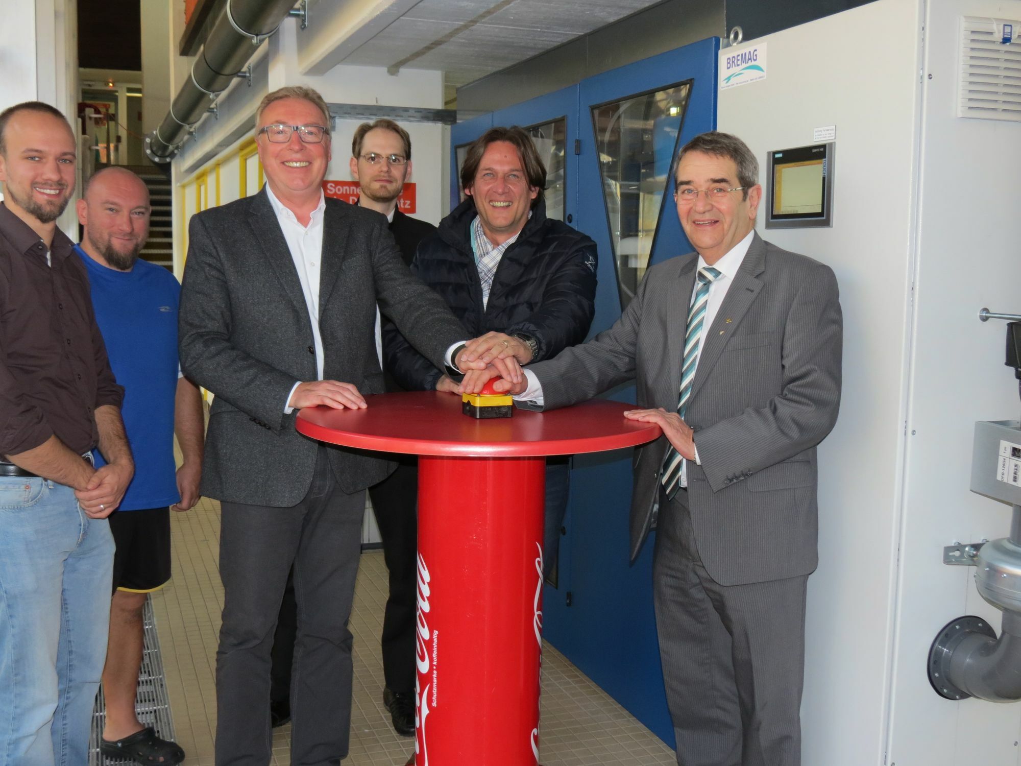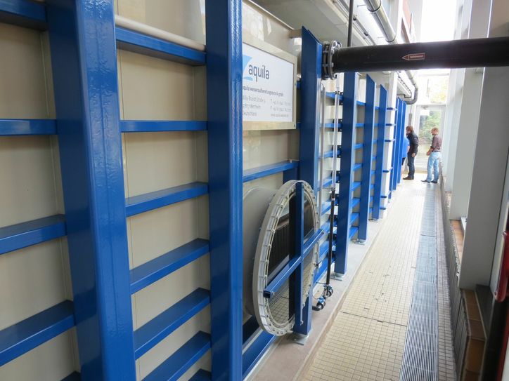 In den vergangenen Jahren wurden die solare Warmwasseraufbereitung, mehrere Photovoltaik-Anlagen und LED-Scheinwerfer im Wellenbad installiert. "Wir sind auf einem guten Weg, der jetzt", so VG-Bürgermeister Helmut Probst, "mit der Inbetriebnahme der Schlammwasseraufbereitungsanlage weitergegangen wird, um insbesondere den ständig steigenden Betriebskosten wirksam entgegenzutreten." Was macht eine Schlammwasseraufbereitungsanlage? Während der Filterspülung wird das Filterrückspülwasser über drei Zwischenspeicher aus den Bereichen Wellenbad, Wintergarten und Kinderland in den neu errichteten Schlammwasserspeicher gefördert. Nach einer voreingestellten Absetzungszeit wird das Filterrückspülabwasser über eine Oberflächenabsaugung entnommen und mit einer frequenzgesteuerten Pumpe über einen Vorfilter in die Aufbereitungsanlage eingespeist. Die Aufbereitung des vorfiltrierten Filterrückspülabwassers erfolgt nach den maßgeblichen DIN-Vorschriften in der 1. Stufe mit einer Ultrafiltration, ausgerüstet mit integrierter Chlorung unter Verwendung von Chlorgas. Mit der Ultrafiltration werden alle ungelösten Inhaltstoffe und mikrobiologischen Verunreinigungen entfernt. Innerhalb der Kompaktanlage ist als 2. Stufe eine Umkehrosmose-Anlage zur Entsalzung installiert. Die Überwachung der Umkehrosmose erfolgt über eine Leitfähigkeitsmessung. Das aufbereitete Betriebswasser wird aufgehärtet, einer Abschlusschlorung unterzogen und anschließend direkt ohne Zwischenspeicherung in die Schwallwasserbehälter, die die einzelnen Schwimmbecken mit Frischwasser versorgen, eingespeist. Fotos: privat www.moselbad.de