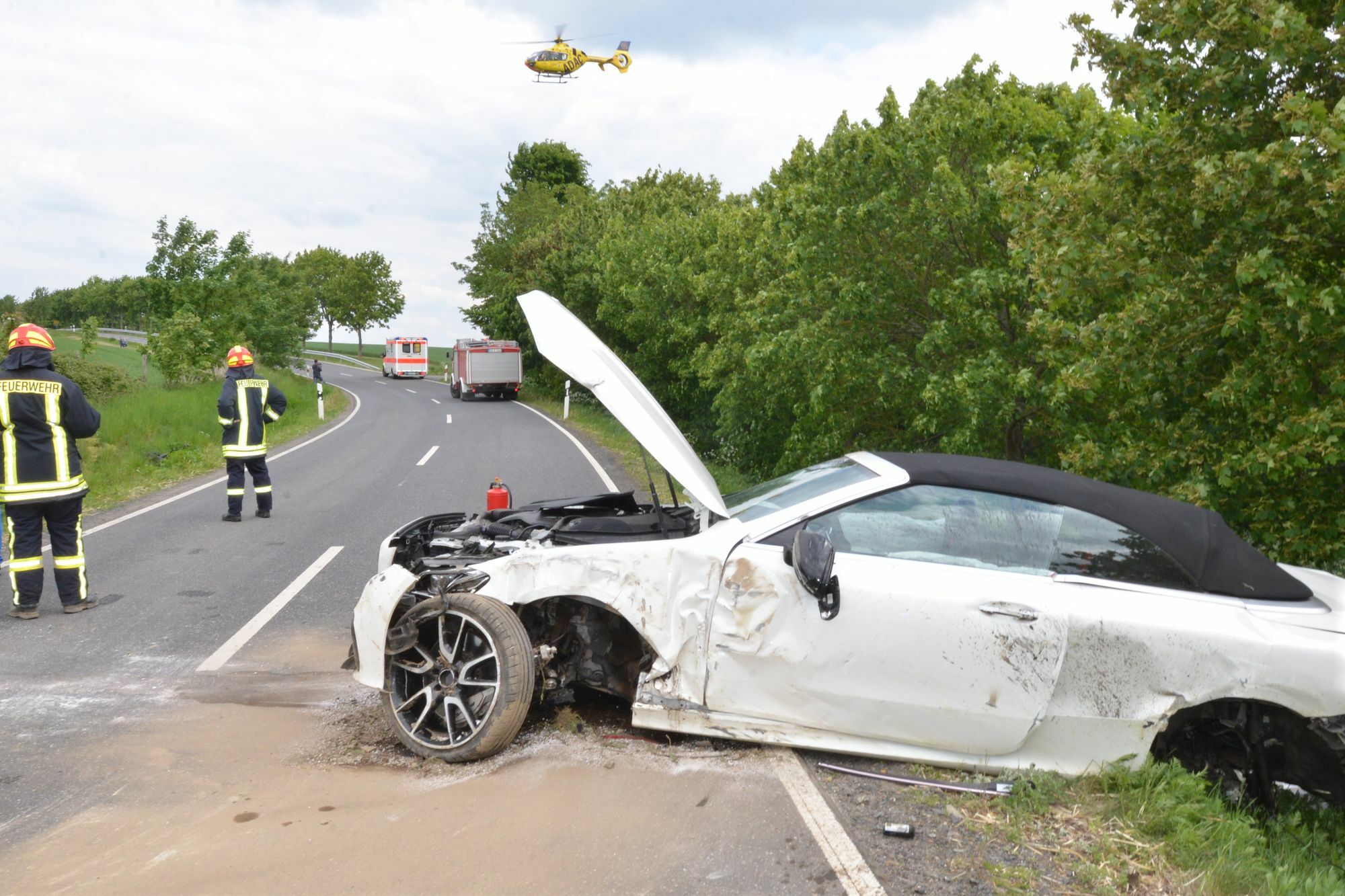 Ein Brüderpaar ist mit ihrem 476 PS-starken Auto ins Schleudern geraten. Beide wurden bei dem Unfall verletzt und in Krankenhäuser gefahren beziehungsweise geflogen. Am Auto, das neu rund 120.000 Euro kostet, entstand vermutlich Totalschaden. Foto: Zender