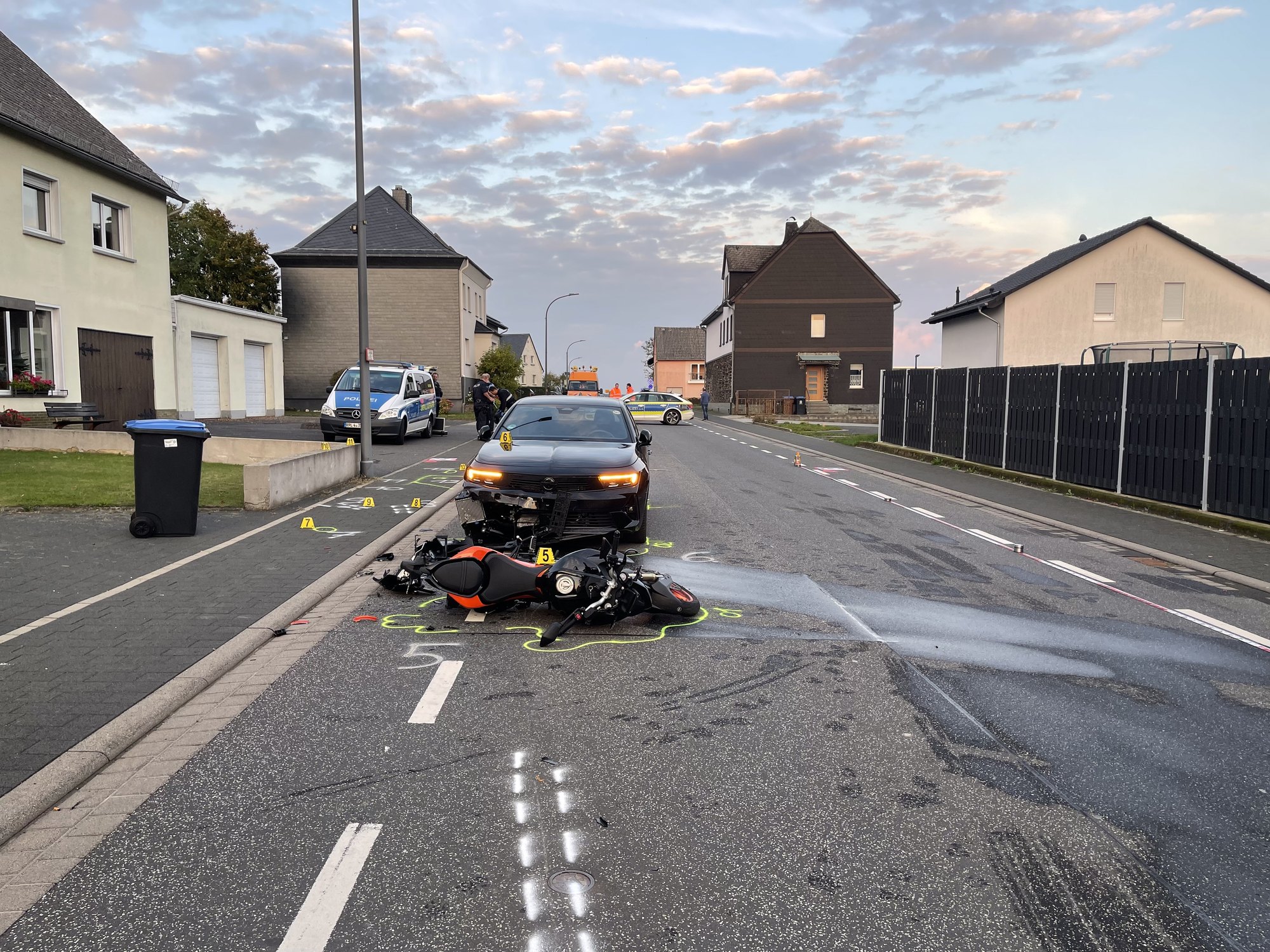 Der Kradfahrer stieß im Begebungsverkehr mit dem Auto zusammen.